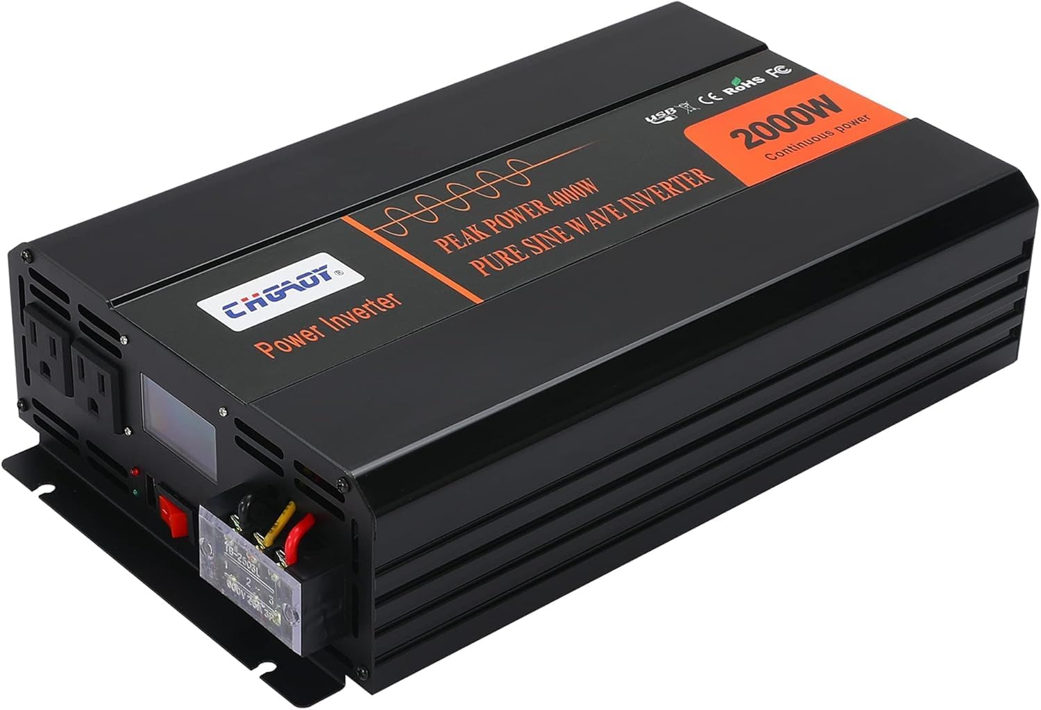 2000W Pure Sine Wave Inverter DC 12V to 120V AC Power Inverter for Home Travel Outdoor Camping RV Car Home Laptop TruckTruckwith LCD Digital Display Remote Control USB Port Power Converter