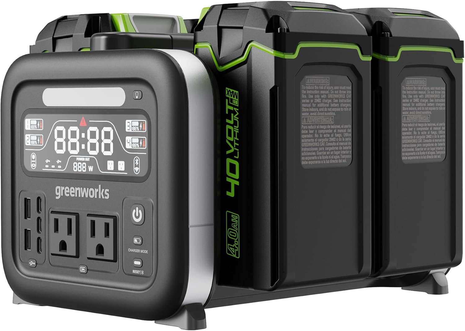 Greenworks 4 x 40V 4Ah Batteries Included, 40V 500W Portable Power Inverter - 4-Slot Design, 2 AC Outlets, 5 USB Ports, Smart APP Control, Outdoor Backup Power Supply