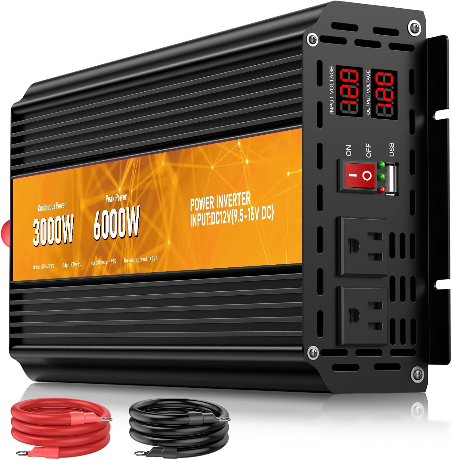 3000W Power Inverter,12V DC to AC 110V120V Peak Power 6000W with 2AC Outlets and 2.4USB Port,LCD Display Car Inverter for Outdoor Activities,Emergency
