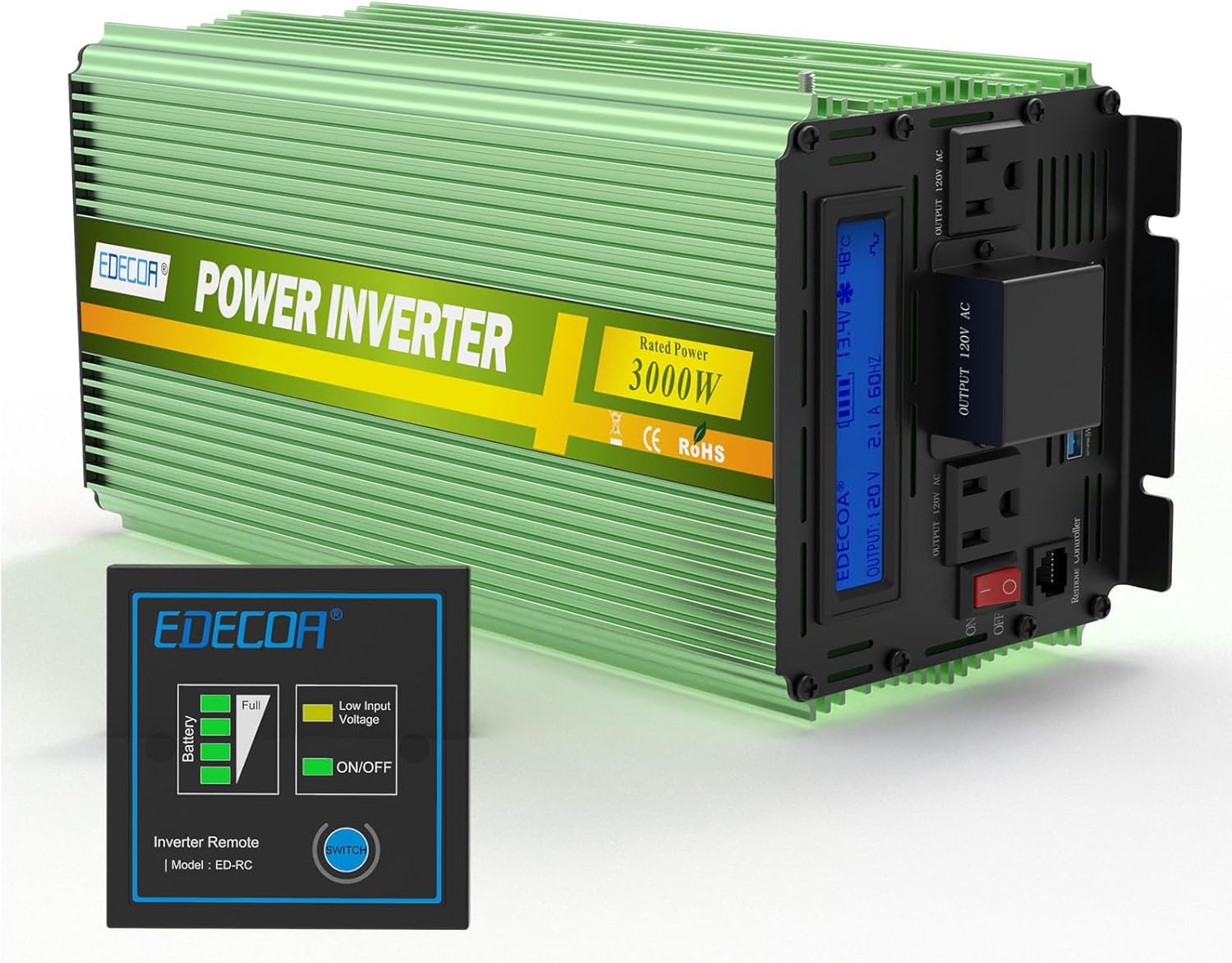 EDECOA 3000 Watt Power Inverter DC 12V to AC 110V 120V for Car Truck RV with LCD Display and Remote Controller