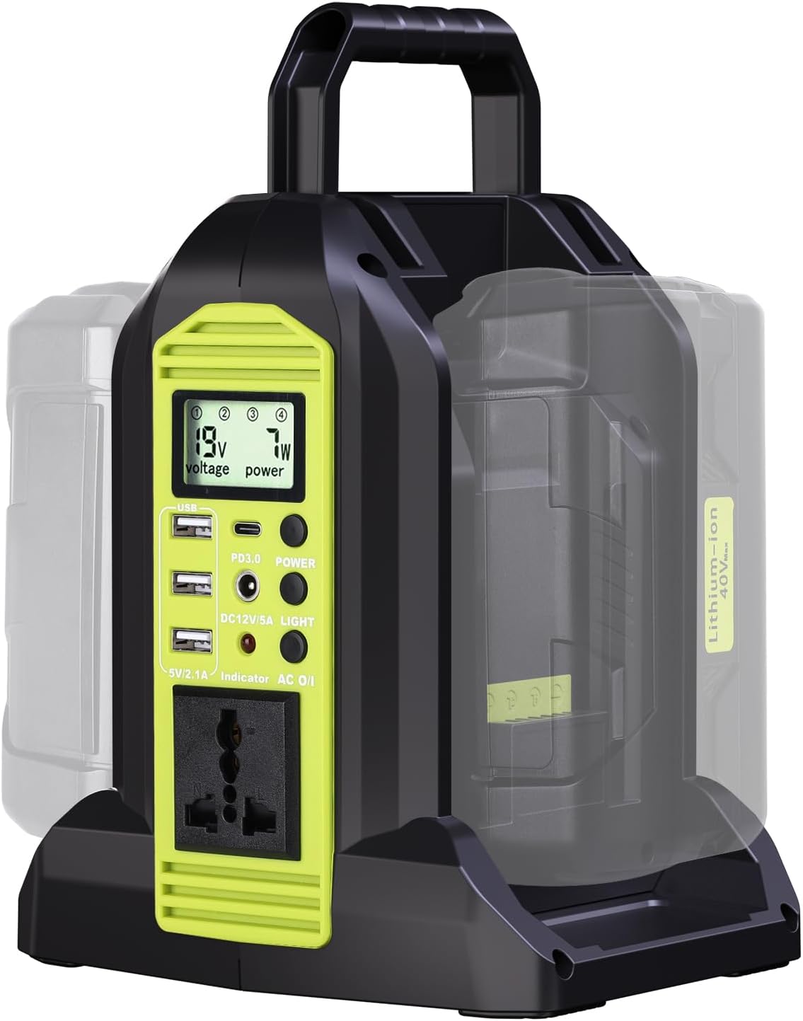 350W Power Inverter for Ryobi 40V Li-ion Battery, OP401 2-Port 40V to 120V Pure Sine Wave Inverter with LED Light, 3 USB-A Port, 1 USB-C Port, 1 DC Port, Power Station for Camping Emergency(Tool Only)