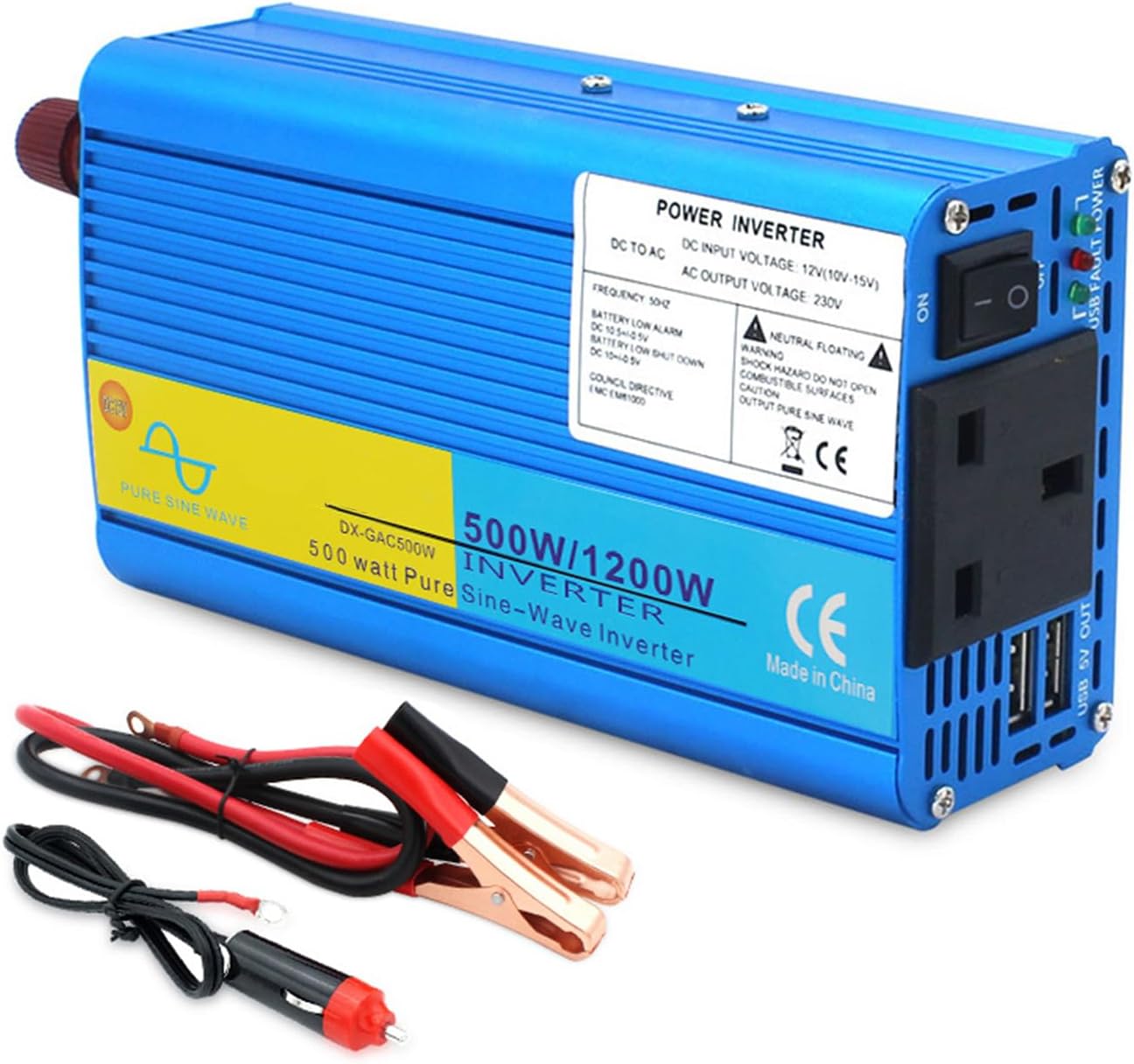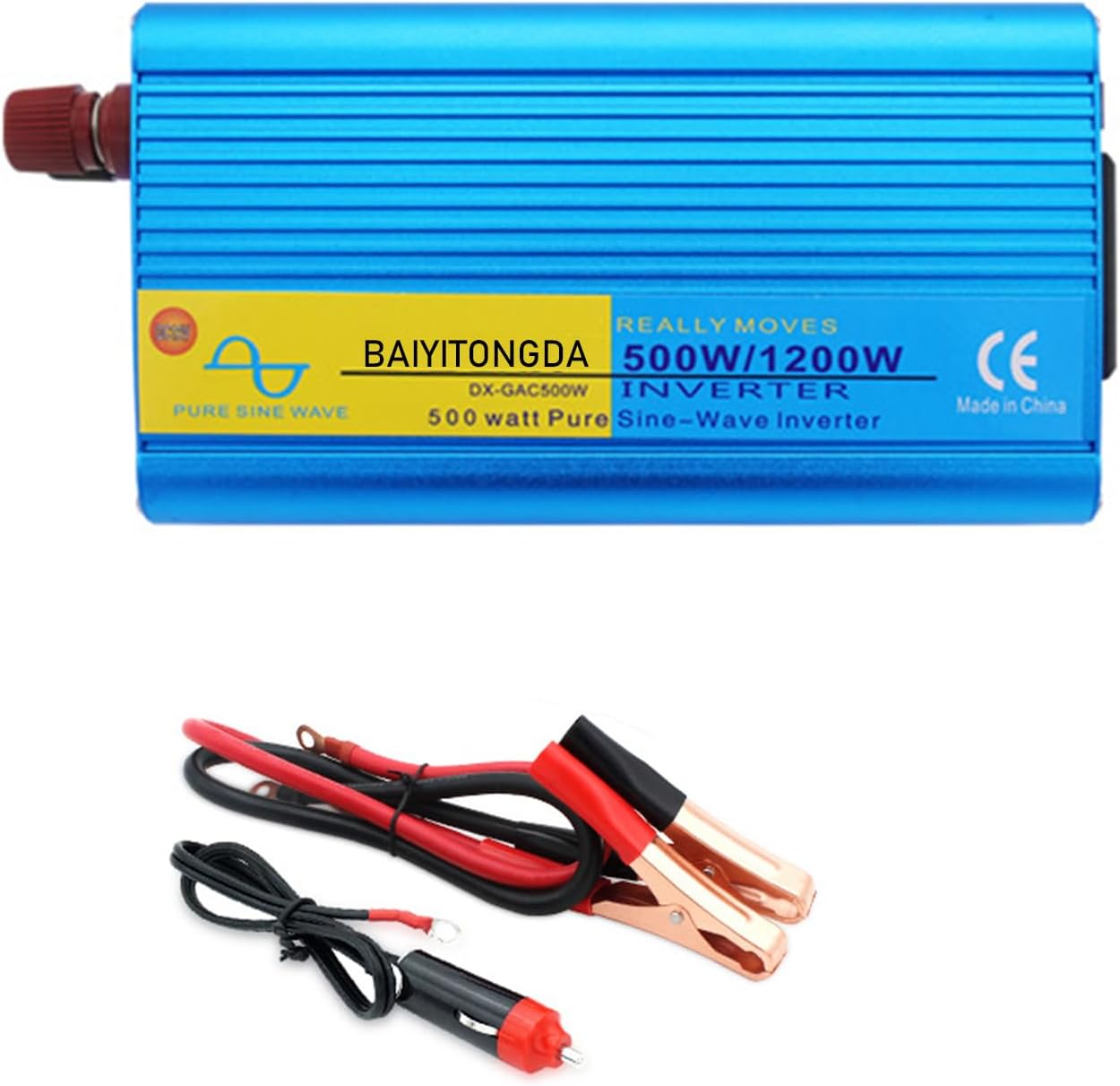 500 Watt Pure Sine Wave Inverter, 12V 24V DC to 110V 120V AC Converter with 1 AC Outlets, Two USB Charging Ports,Car Charger Plug Power Inverter,24v