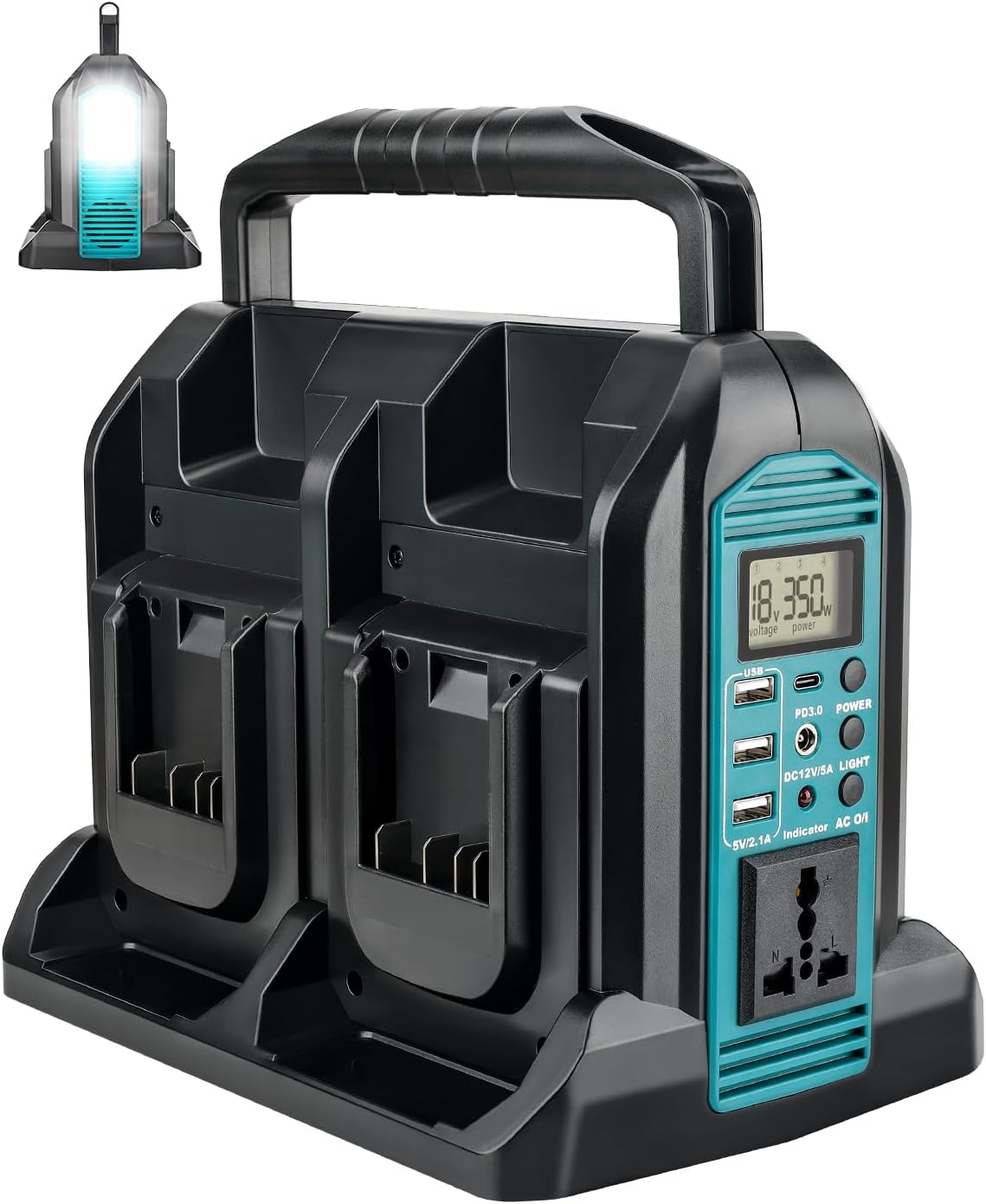 350W Power Inverter for Bosch 18v Battery, 4-Ports DC 18V to AC 110-120V Pure Sine Wave Battery Inverter with 3 USB-A Port, 1 USB-C Port,300lm LED Light for Camping Travel Emergency(Tool Only)