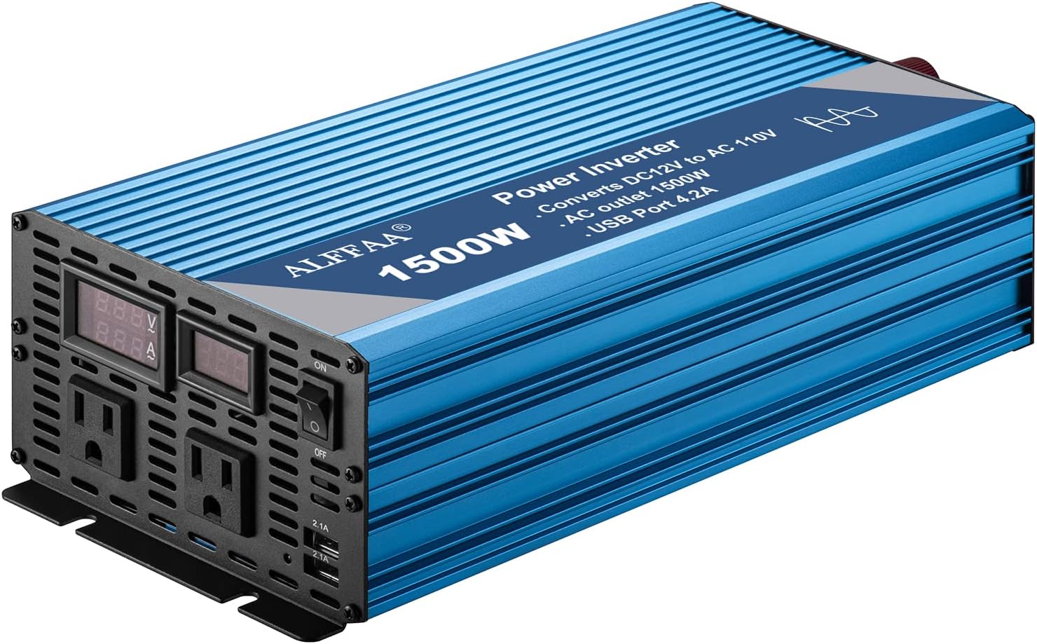 1500W Pure Sine Wave Inverter 12V to 110V with Built-in 5V/2.1A USB Port,Hardwire Terminal, LCD Display,12V DC to 120V AC Converter for Home, RV, Truck (1500W)