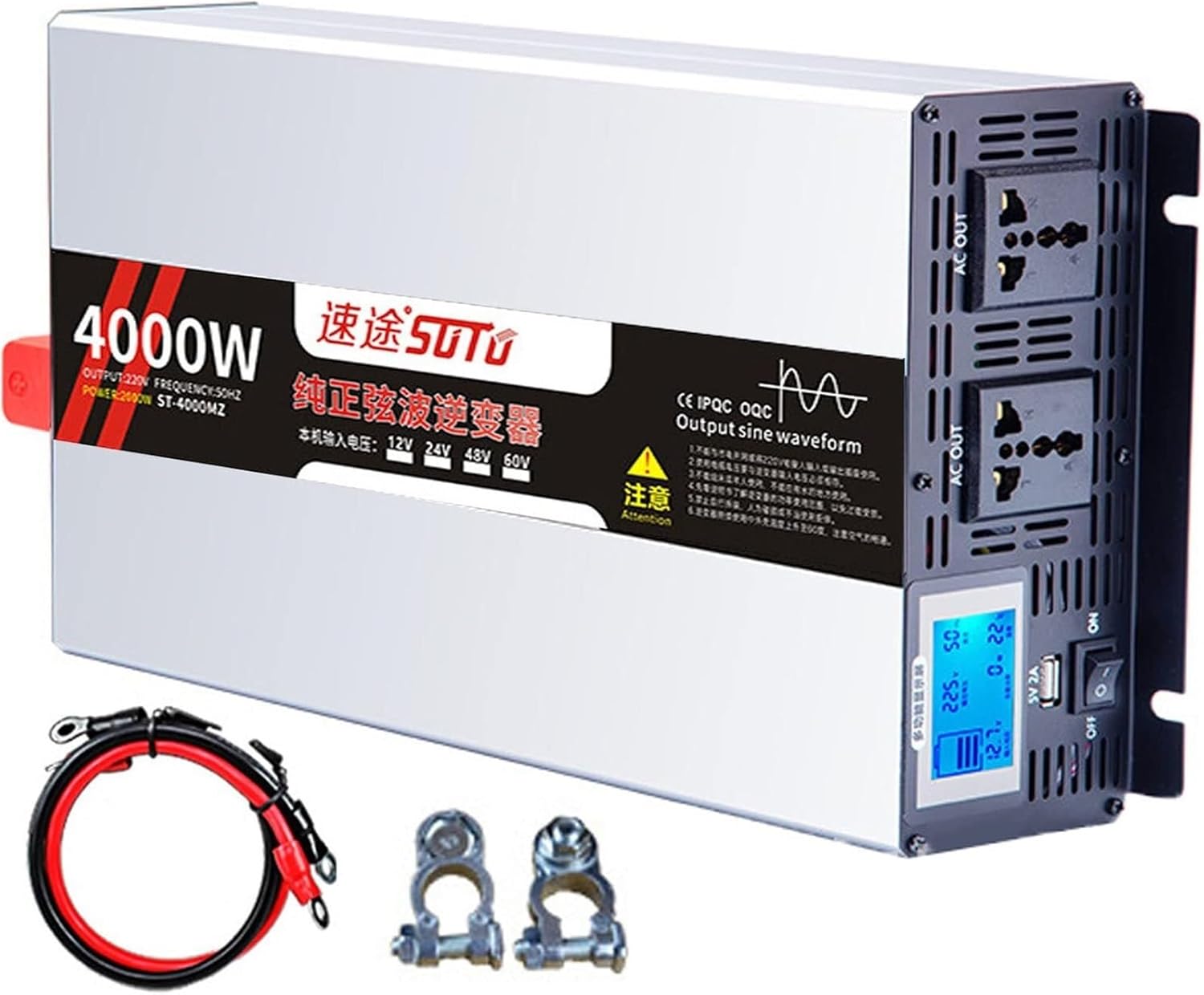 4000W 5000W 6000W Pure Sine Wave Inverter 12V 24V 48V 60V 72V to 110V /230V 240V Car Inverter Voltage Converter Power Inverter Transformer with Lcd Display AC Outlets for Truck,camping(4000W,60Vto110