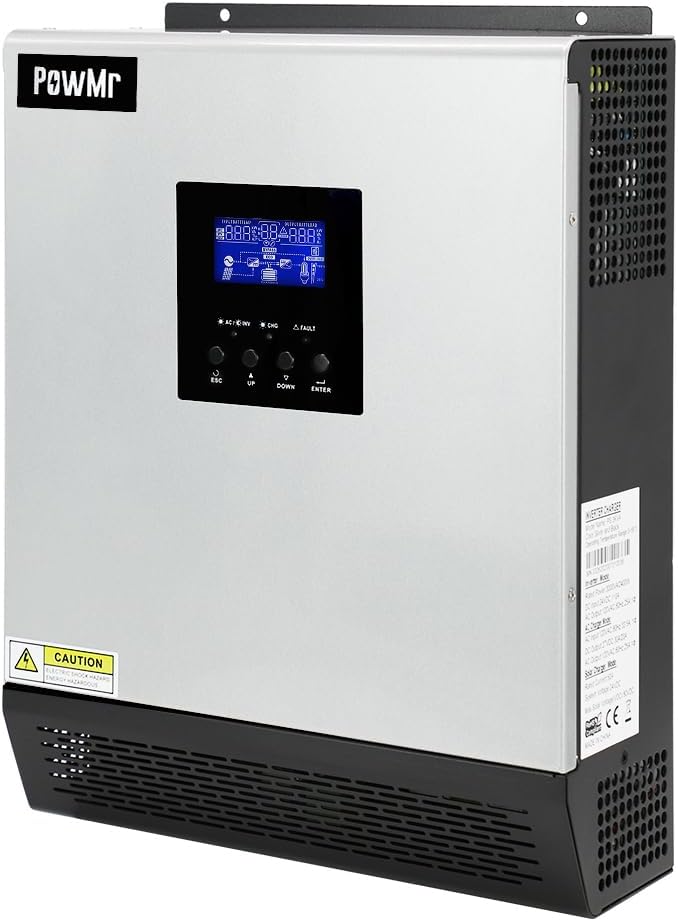 PowMr 2400W Solar Inverter, 24VDC to 110V/120VAC Pure Sine Wave with 50A PWM Charge Controller, Hybrid Inverter for Homes, RV, 24V Lead-Acid, Sealed Gel/AGM Battery, Off-Grid Systems