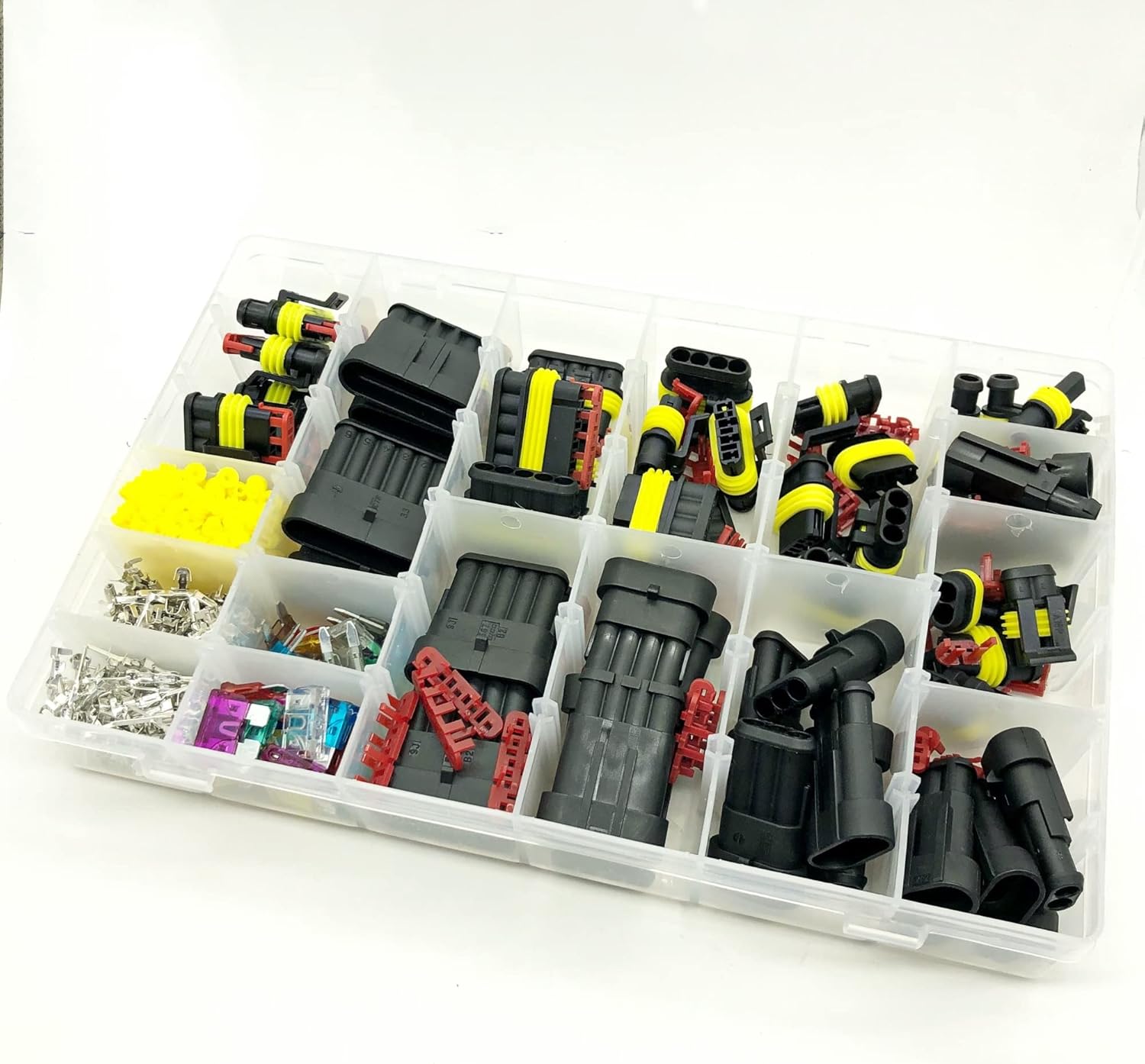 Demasiado 472 Pcs Superseal AMP Tyco Waterproof 12V Electrical Wire Connector Sets Kits with Crimp Terminal and Car Fuse small medium size