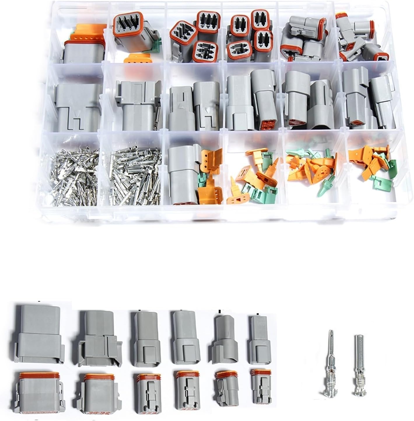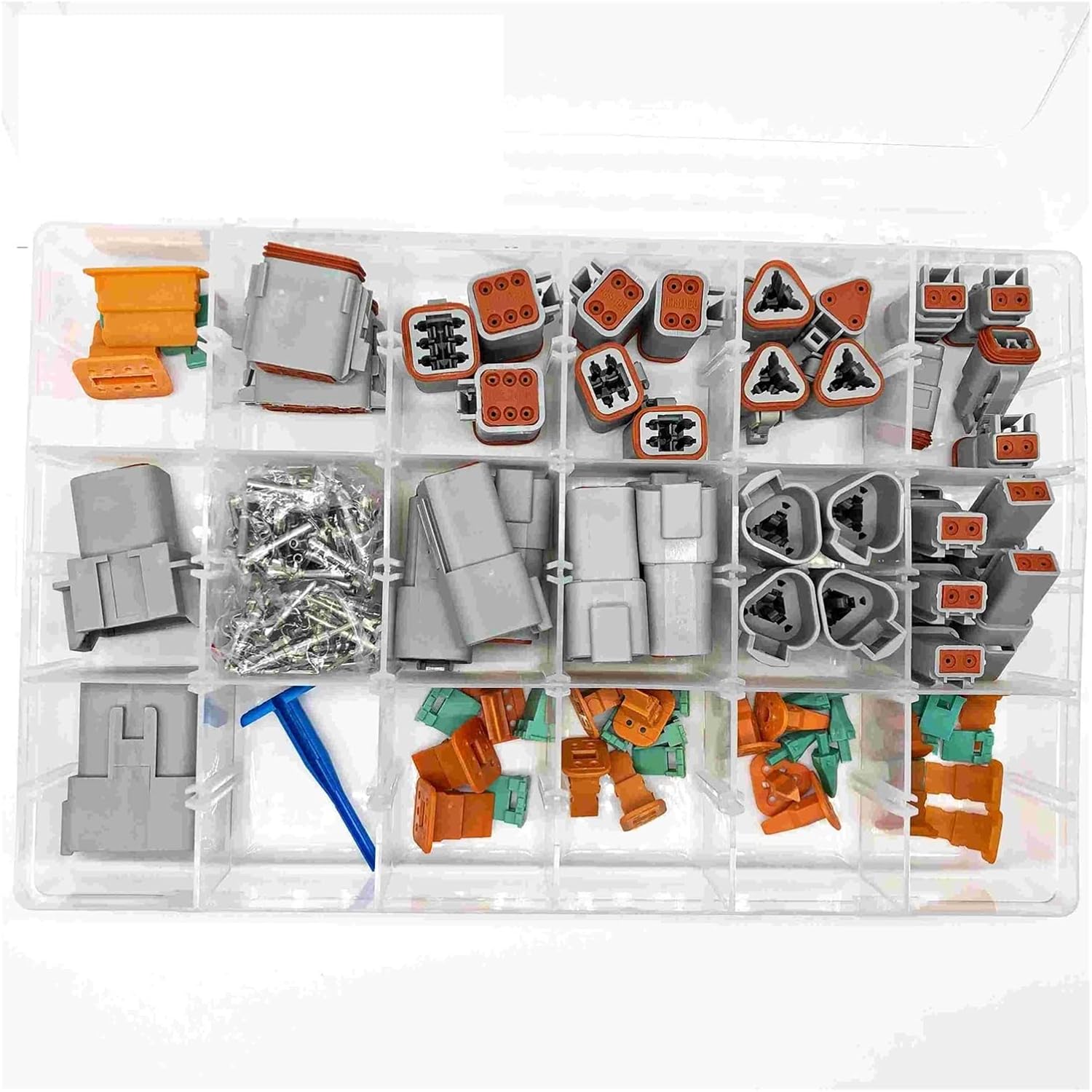 Artemisia 225pcs Deutsch DT Automotive connectors kit DT06/DT04 2/3/4/6/8/12 Pin + 16-18AWG Crimp Terminals + Removal Tool 0411-336-1605 (Color : Gray)