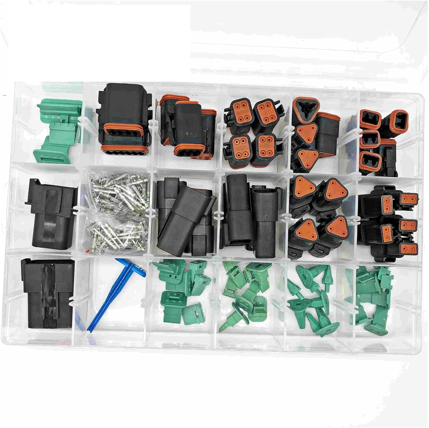 Artemisia 225pcs Deutsch DT Automotive connectors kit DT06/DT04 2/3/4/6/8/12 Pin + 16-18AWG Crimp Terminals + Removal Tool 0411-336-1605 (Color : Black)