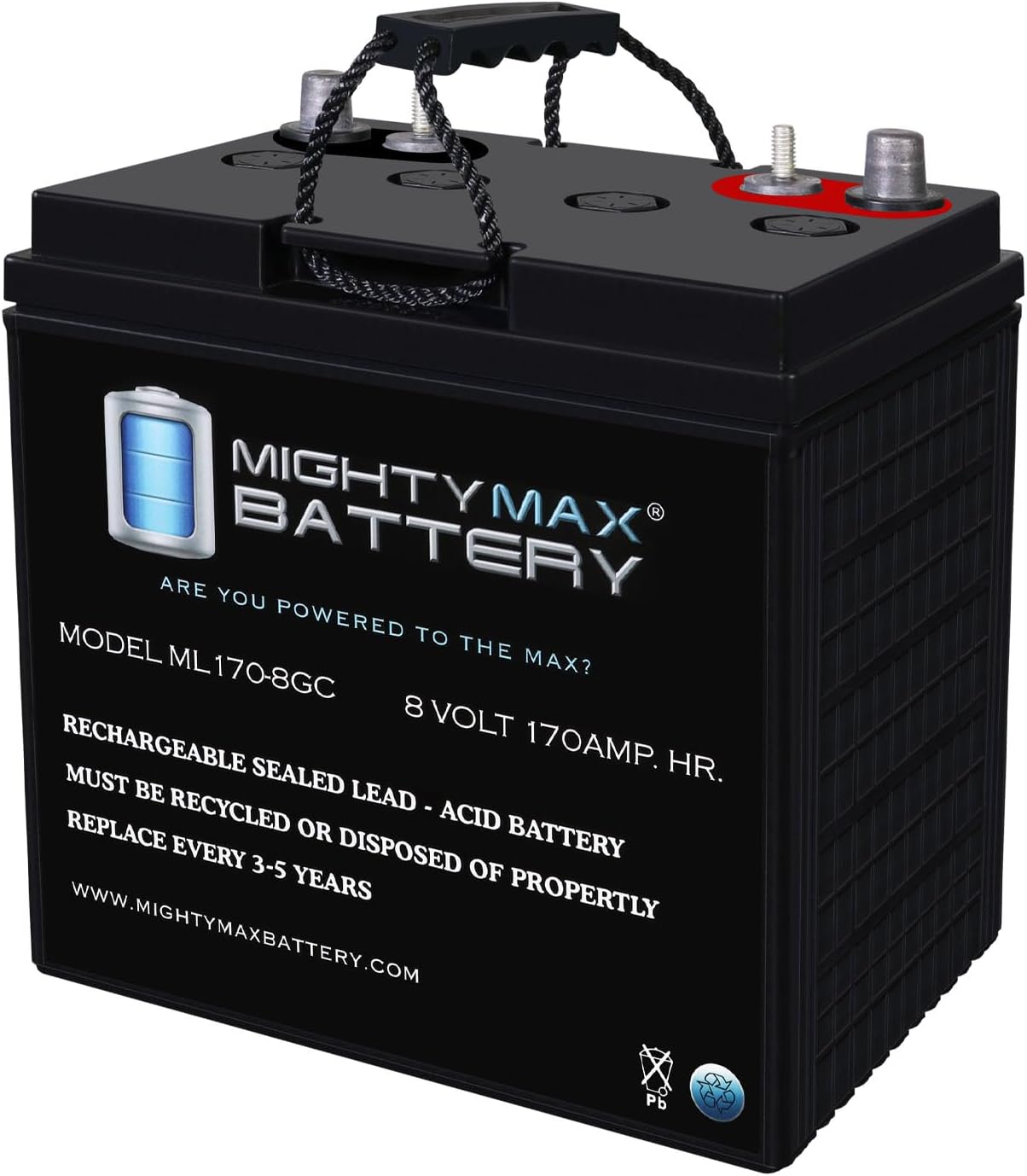 Mighty Max Battery 8V, 170Ah, AGM, Dual Terminal, Replacement Battery Compatible with Deep Cycle ezgo Club Car