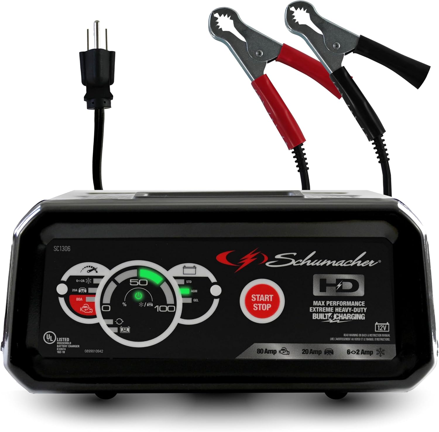 Schumacher Electric 6A Car Battery Charger and 80A Engine Starter, 4-in-1 Solution, Maintainer, 20A Boost, for 12V Power Sport, Automotive, and Marine Batteries, SC1306