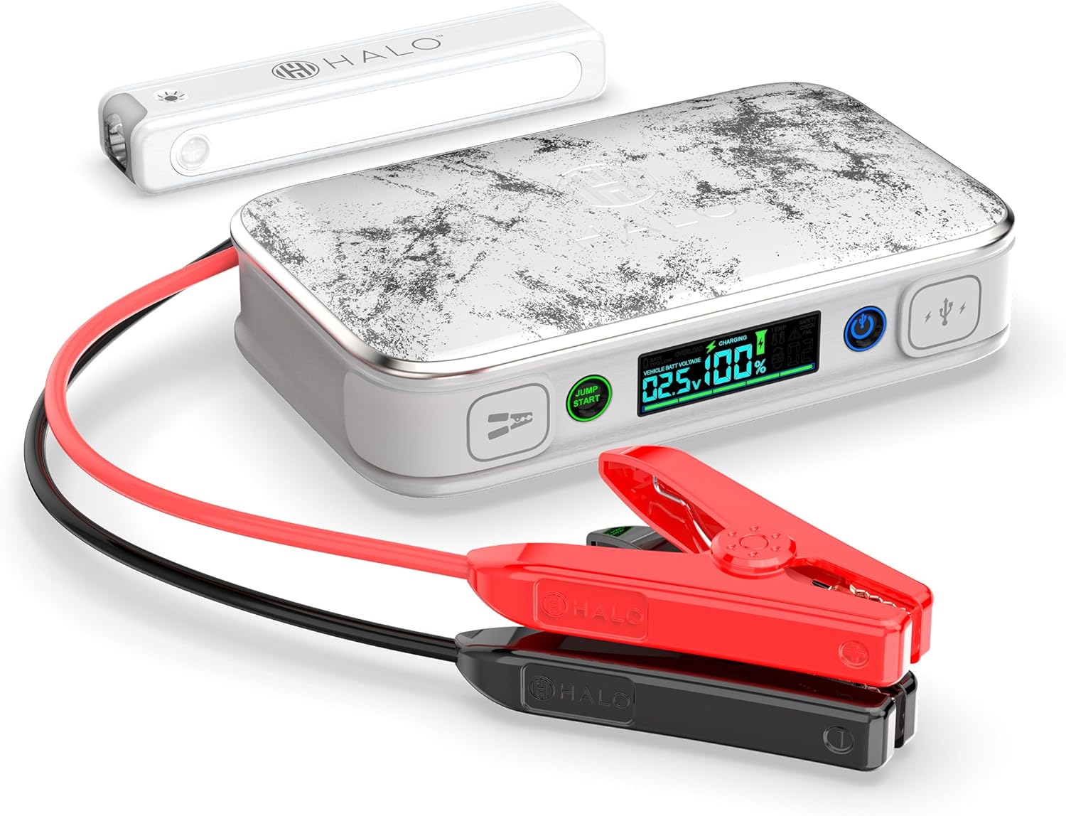 Halo Bolt PaL 1000 Portable Car Jump Starter | USB-A & USB-C Charger Ports, Digital Display, Powers Multiple Devices, Detachable Power Bank & Emergency Flashlight, Jumps Cars SUVs & Trucks — Grey