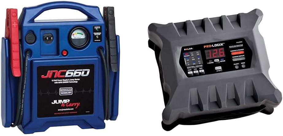 Clore Automotive Jump-N-Carry JNC660 1700 Peak Amp 12 Volt Jump Starter & PL2310 10-Amp Fully-Automatic Smart Charger, 6V and 12V Battery Charger, Battery Maintainer