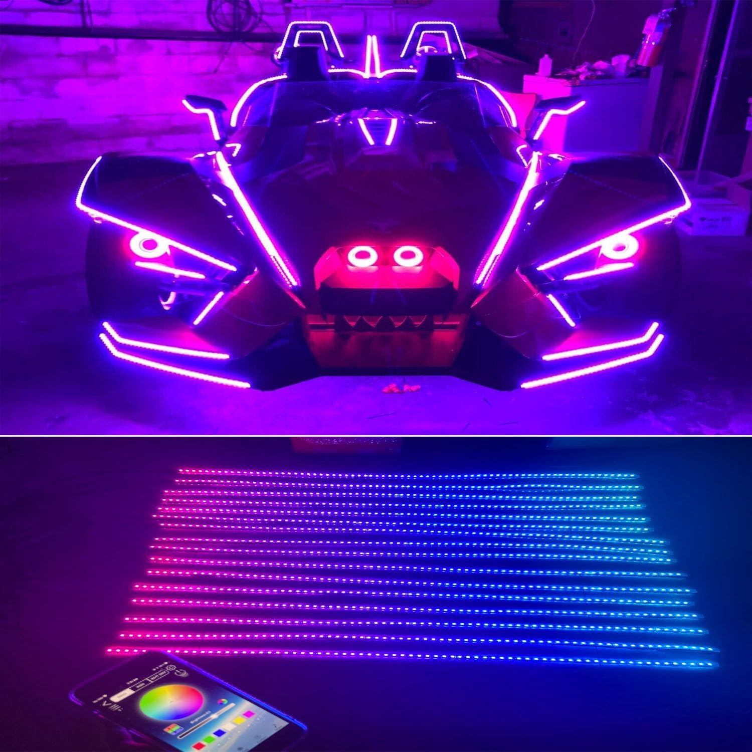 Bluetooth + Remote Control 16PCS 6.5FT 2Meters 78Inch Single Row RGB + Solid Color + Dream Color Chasing Light Strips IP68 Lighting Off-Road for Car Truck Underbody Slingshot Ryker Spyder