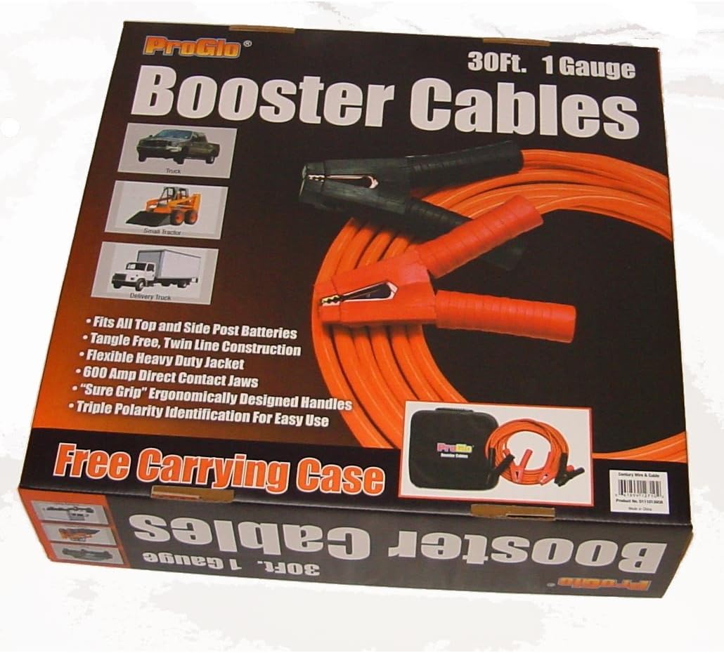 30-Foot 1 Gauge Tangle-Free Rubber Battery Booster Jumper Cables