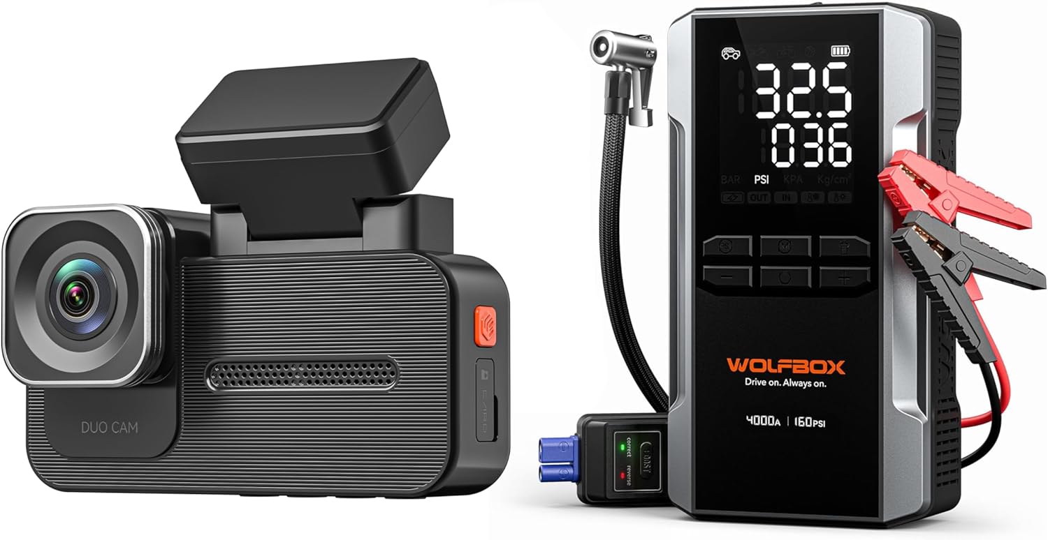 WOLFBOX 4000A Jump Starter with 160PSI Air Compressor & X5 Duo Dash Cam