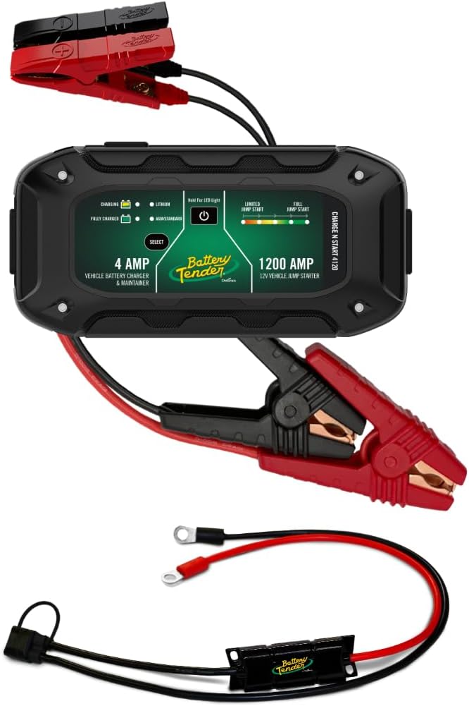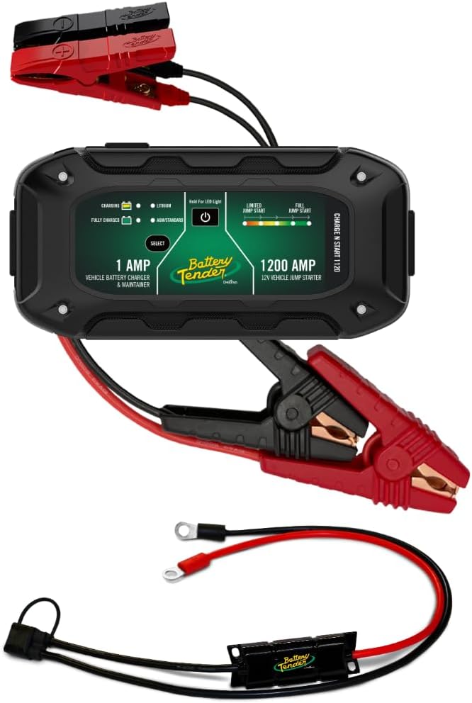 Battery Tender Charge N Start 1120, 12V/1 AMP Battery Charger and 1200 AMP Jump Starter + Ring Terminal Quick Disconnect Harness for Jump Starter - Motorcycle, Dirtbike, ATV, UTV, PWC, Boat