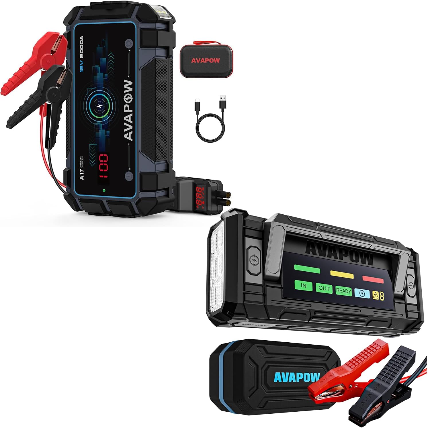 AVAPOW 8000A Battery Jumper Starter Portable with 4″ HD Display PD 30W Dual-Way Fast Charging&AVAPOW Car Battery Jump Starter 2000A Peak, Jumpstart with Force Start Function