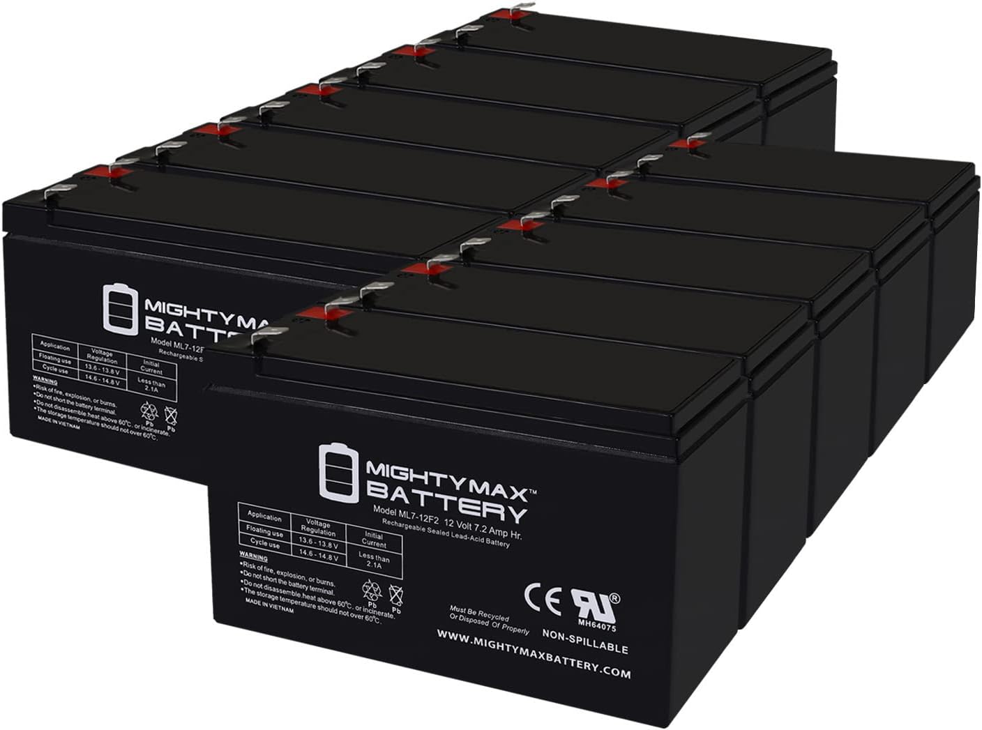 Mighty Max Battery 12V 7Ah F2 Replacement Battery for Peak PKC0J6 600 AMP Jump Starter - 10 Pack