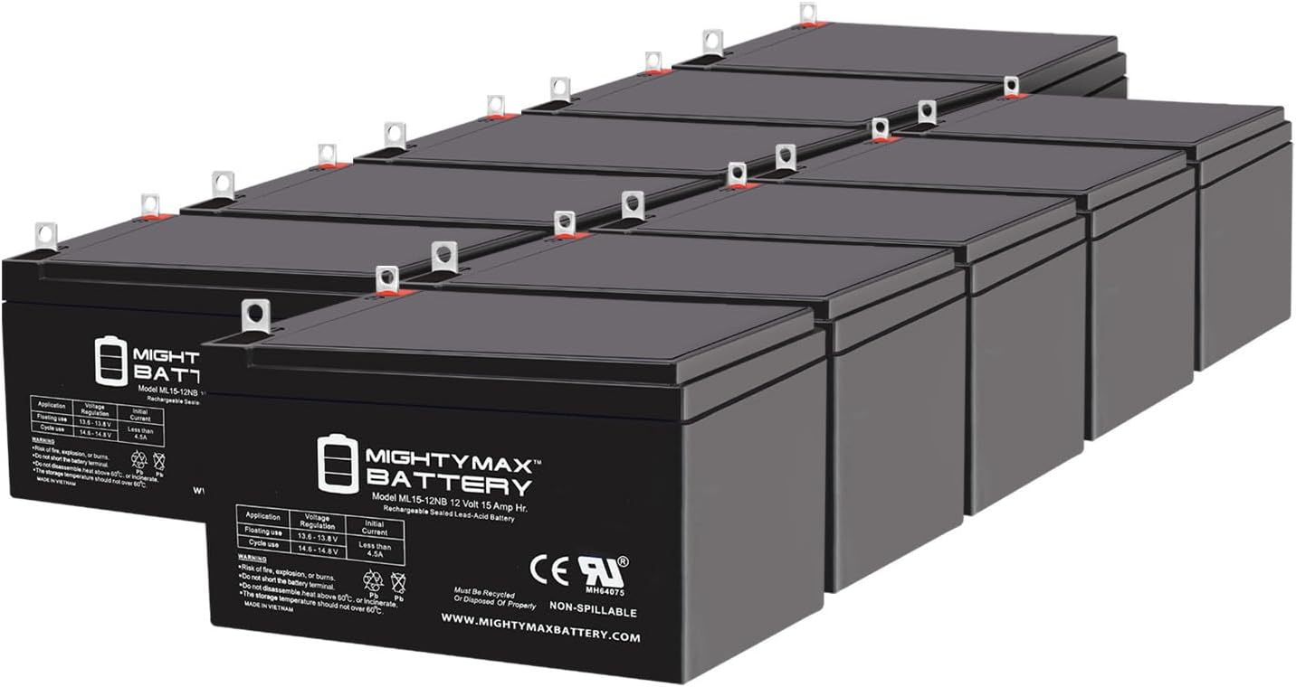 Mighty Max Battery ML15-12NB 12V 15AH Replacement Battery Compatible with Wagan 2544 500 amp Jump Starter - 10 Pack