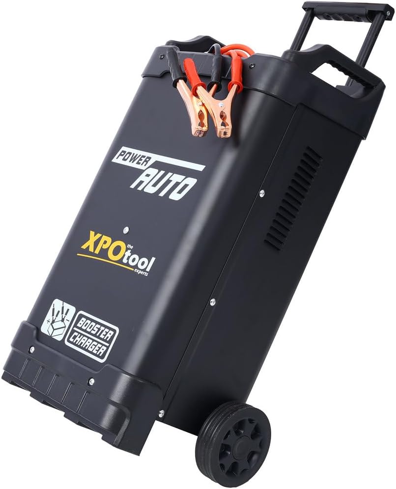 12V & 24V Wheeled Battery Charger and Jump Starter – 300A Cranking Amp, Rapid Boost Modes, Fully Automotive Battery Maintainer with Telescopic Handle, Dial Display