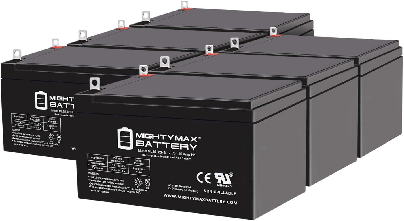 Mighty Max Battery ML15-12NB 12V 15AH Replacement Battery Compatible with Wagan 2544 500 amp Jump Starter - 6 Pack