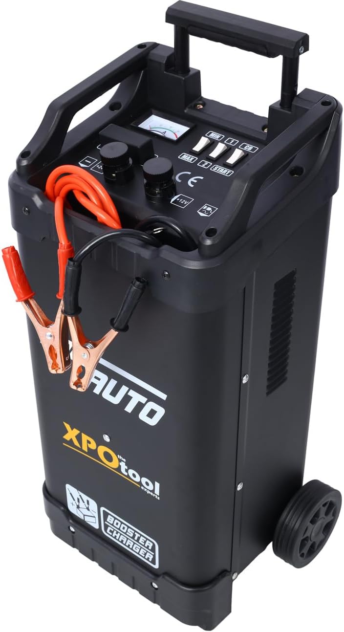 Wheeled Battery Charger, Fully Automotive Battery Maintainer Jump Starter Dial Display Telescopic Handle, 12V/24V, for Cars, Trucks, SUVs, Marine, RV Batteries