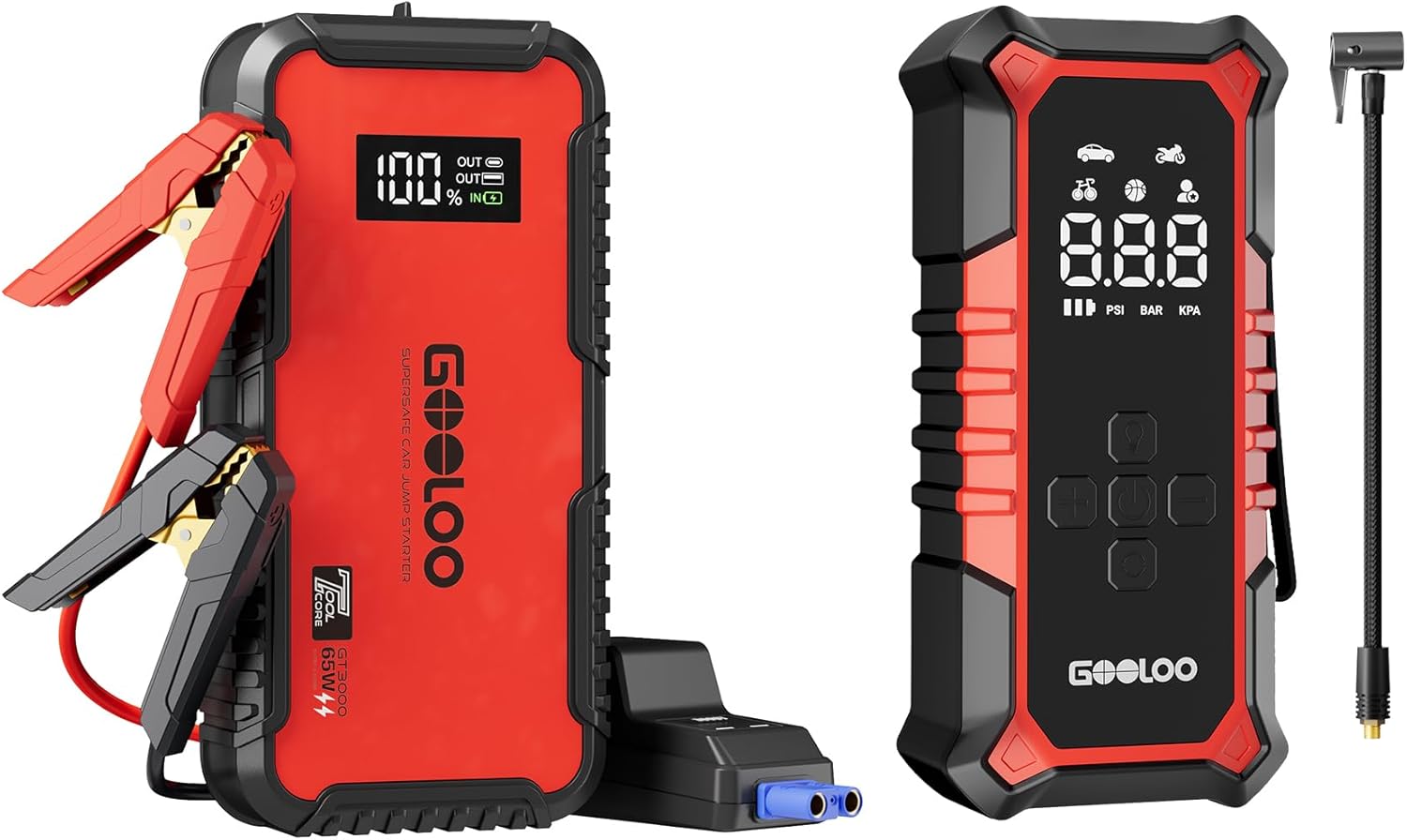 GOOLOO GT3000Jump Starter 3000A& GOOLOO A6 Gear Tire Inflator Portable Air Compressor 160PSI Cordless Tire Inflator