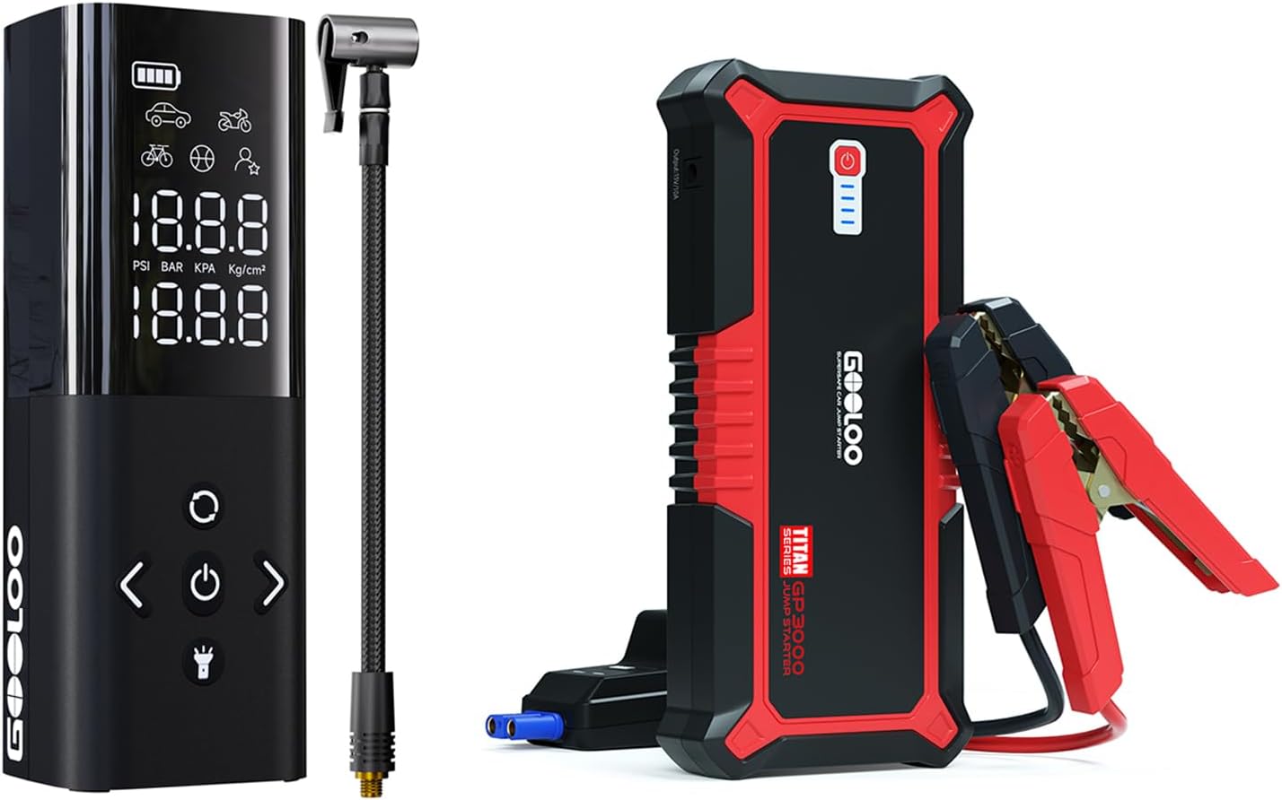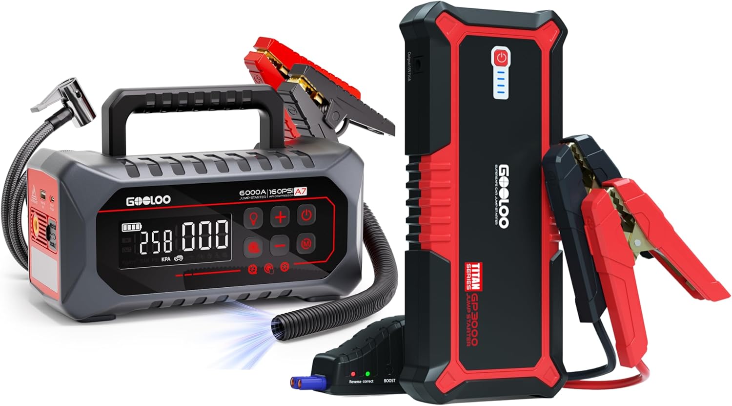 GOOLOO A3 Jump Starter with Air Compressor & GOOLOO G7 3000A Jump Starter with Built-in Cable