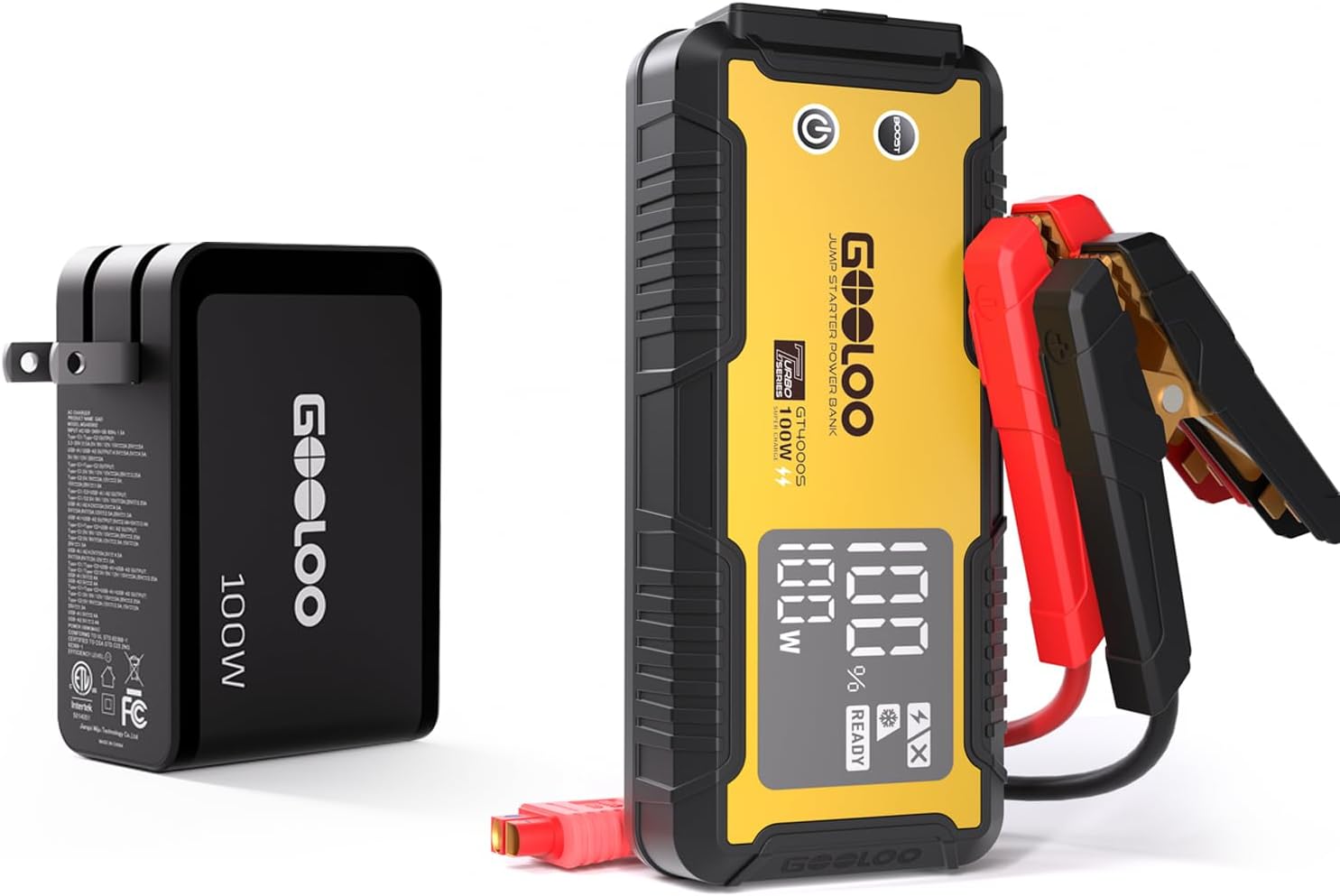 GOOLOO GT4000S Jump Starter 4000A Car Jumper Starter (Up to 10L Diesel 12L Gas Engines) & Gooloo 100W USB C Charger Block