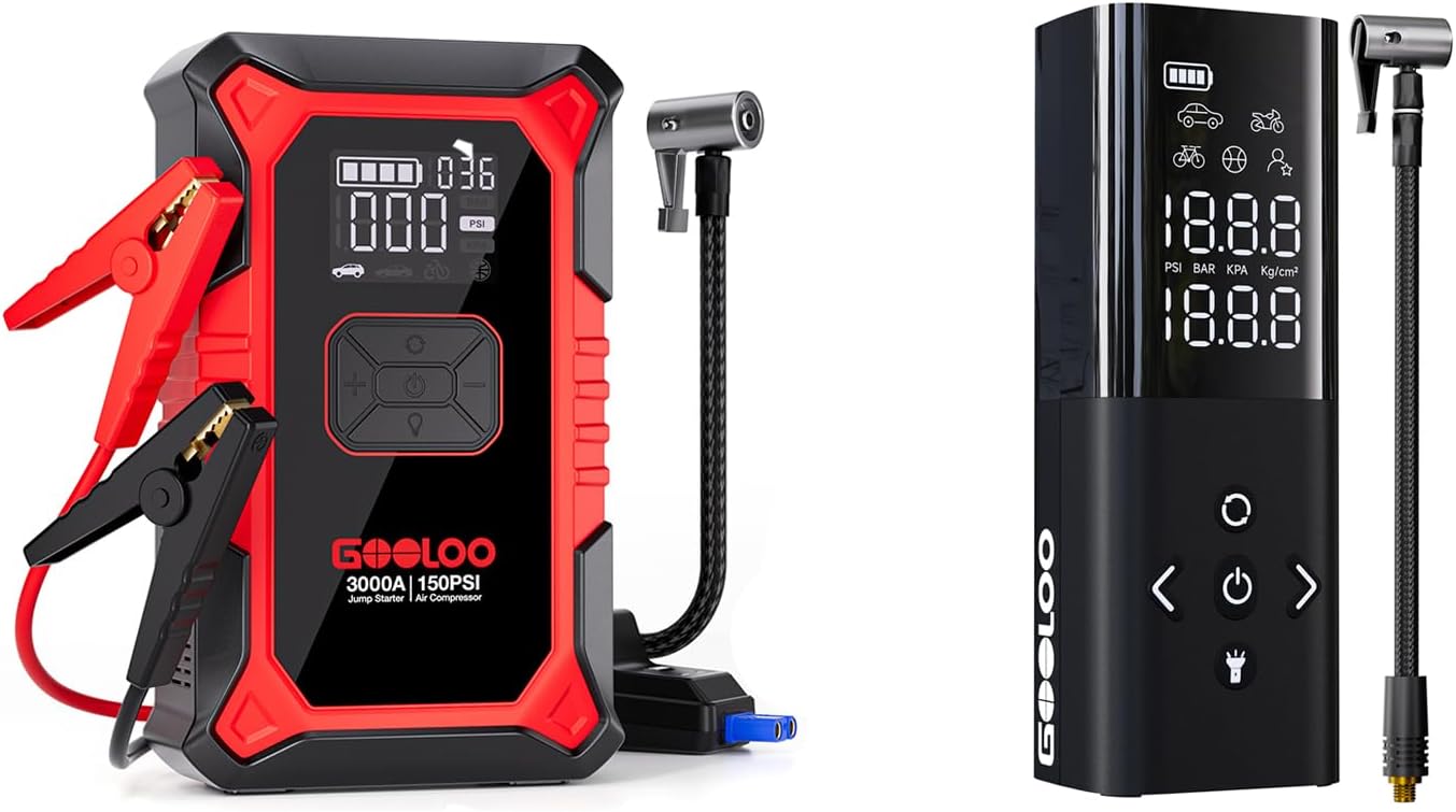 GOOLOO Upgraded GP3000 Jump Starter & GOOLOO A7 Jump Starter with Air Compressor