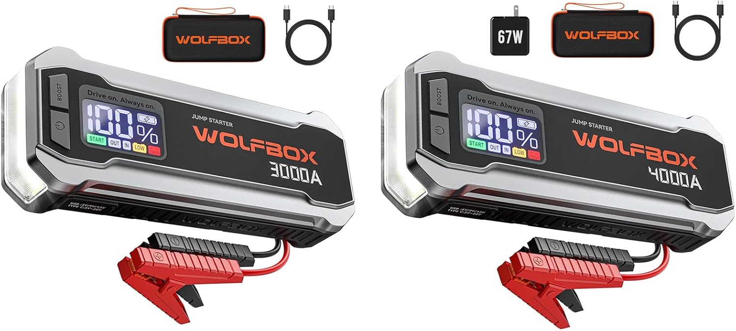 JS3000 12V 3000A Battery Booster Jump Starter Pack for Up to 9L Gas/ 7L Diesel Engines, Portable Car Battery Charger with Handle Jumper Cable and EVA Protection Case
