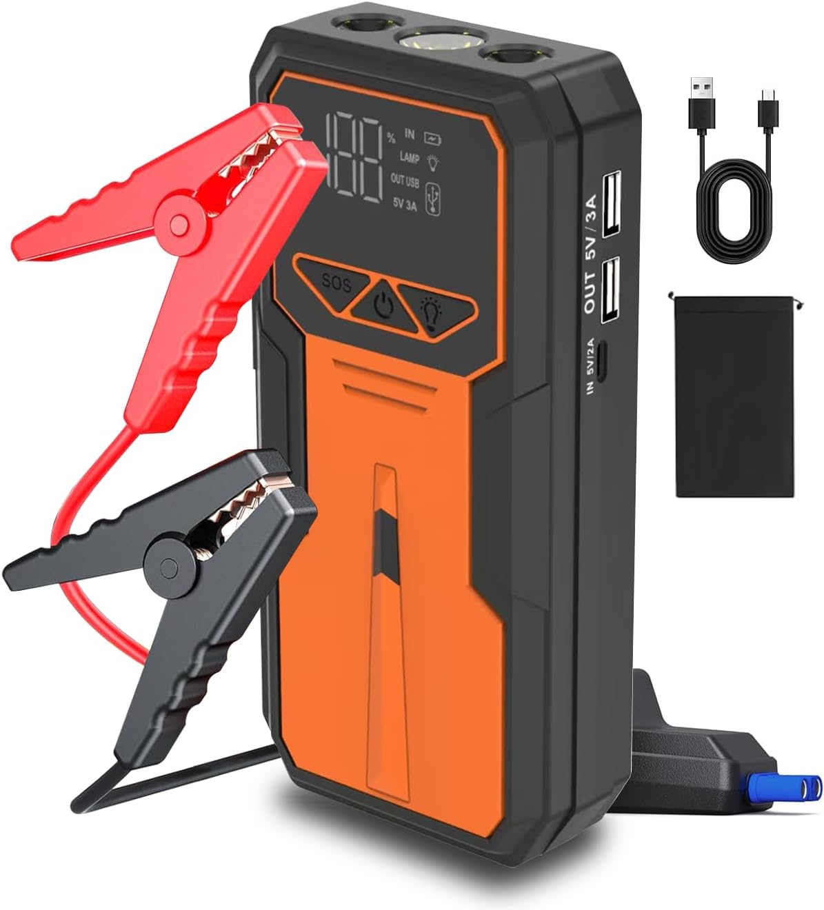 Portable Jump Starter,12V Car Battery Jump Starter Power Pack with USB Quick Charge (Up to 9L Gas or 7L Diesel Engine) Battery Booster with Built-in LED Light