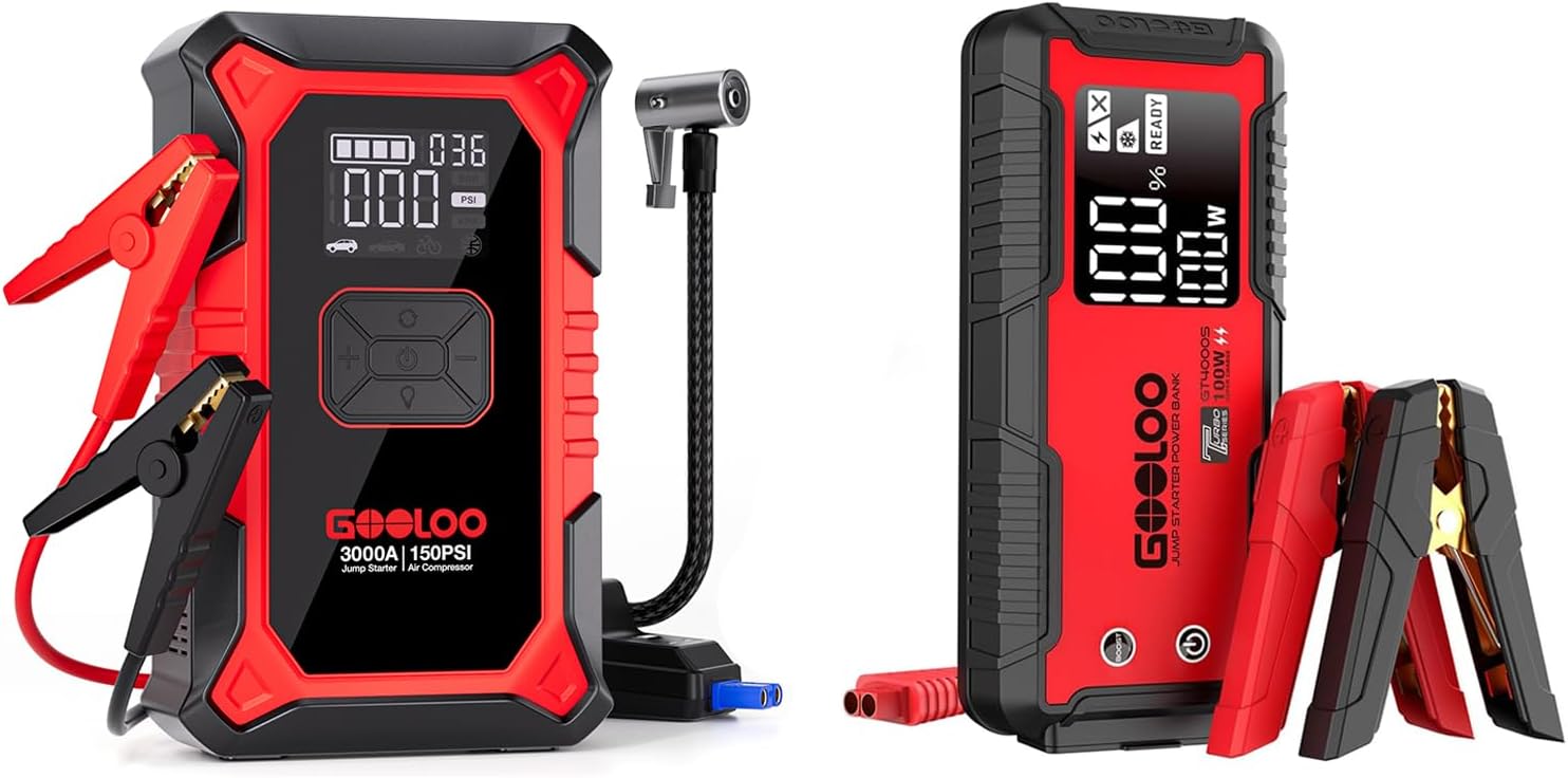 GOOLOO GT4000S Jump Starter & A3 Jump Starter with Air Compressor, 3000A Portable Car Battery Booster (9.0 Gas/6.5L Diesel) with 150PSI Auto-Shutoff Tire Inflator