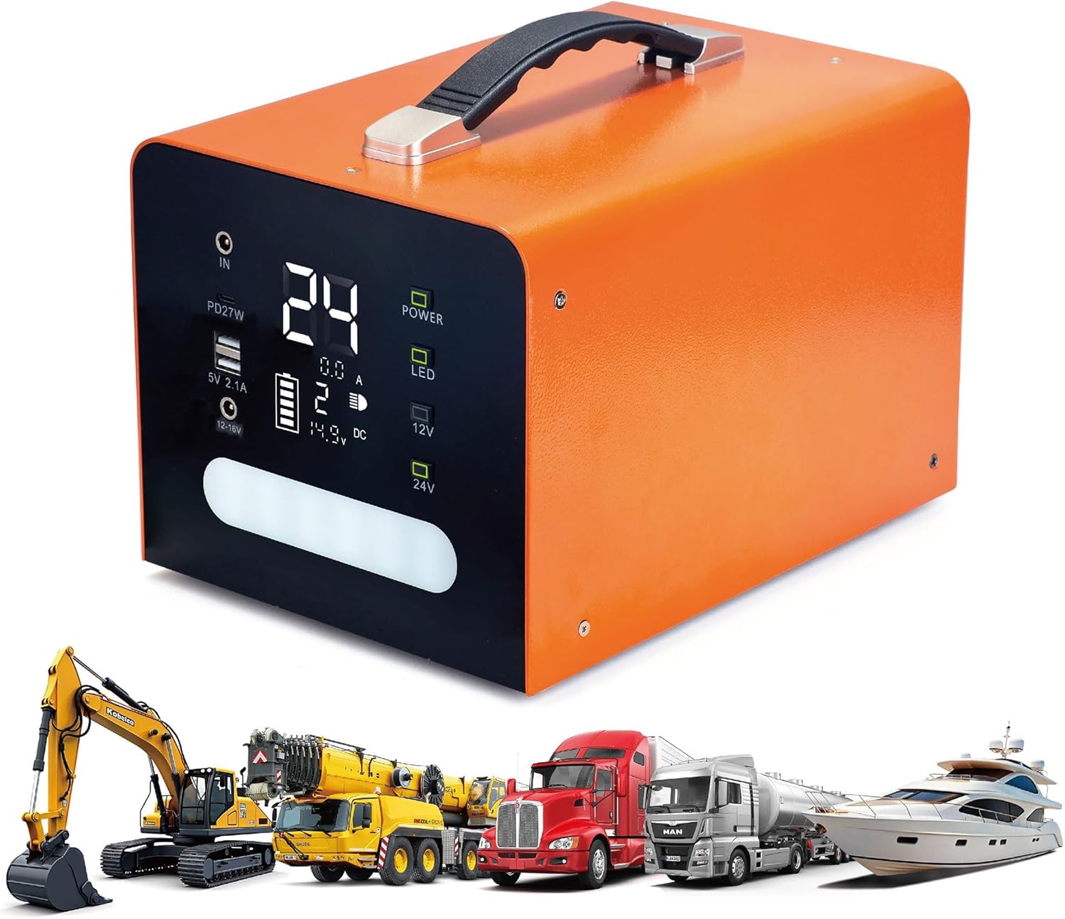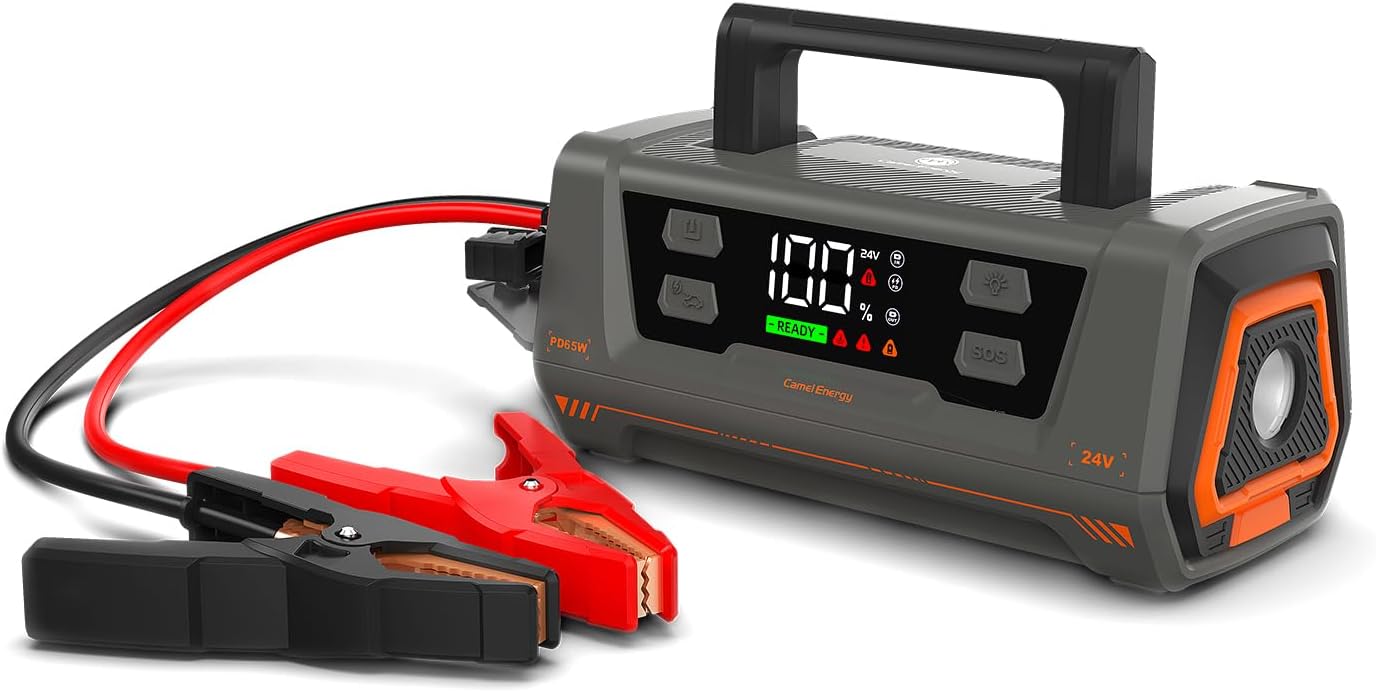 Truck Jump Starter Heavy Duty, 18000A 236.8Wh Battery Package is Suitable for 50L dieselengines and is Compatible with 12V/24V Automotive Emergency Starters. lt can Start Vehicles Normally at-40°F.