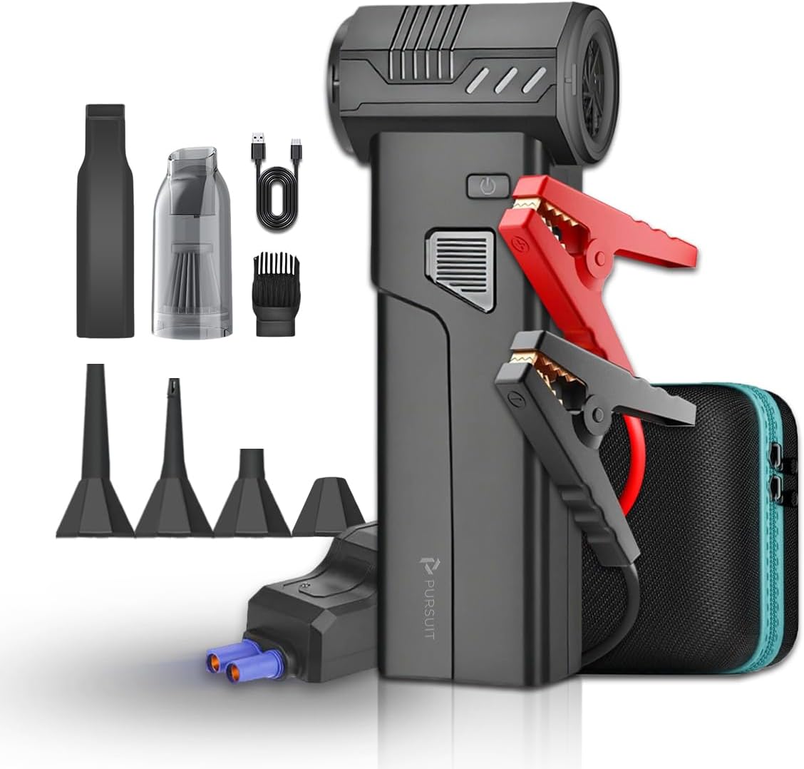 5-in-1 Jump Starter with Air Duster, Portable Vacuum, 2000A Car Battery Booster, Air Inflator/Deflator, 8000mAh Power Bank - 130000RPM Blower Fan Multi-Function Emergency Tool for Car & Outdoor Use