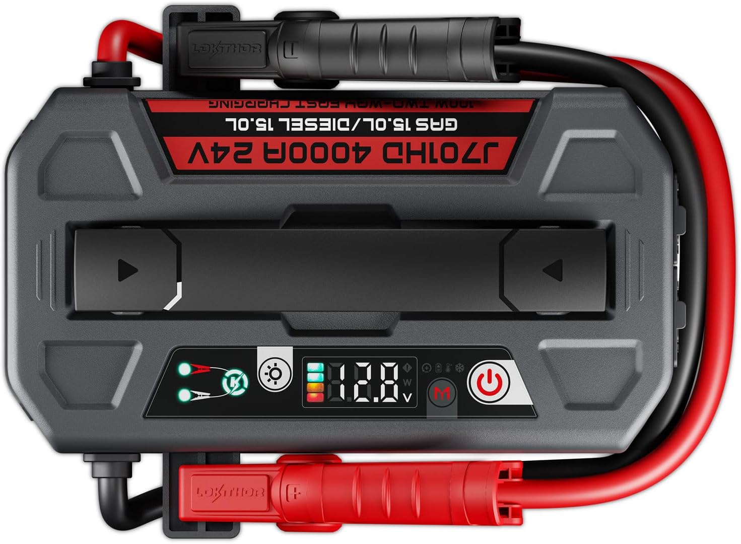LOKITHOR J701HD 24V 4000A Jump Starter with ConnectMax, Portable Jump Box Up to 15L Gas and 15L Diesel Engines, 100W Quick Charge Power Bank & DC Out, 400LM Lights