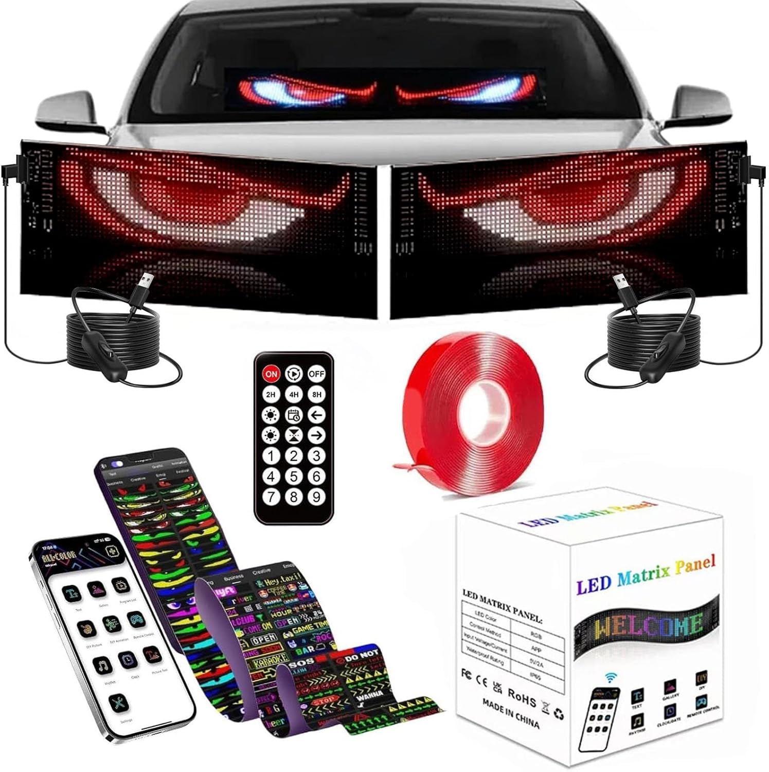 DIY Car Dynamic LED Smart Colorful Eye Lamp Soft Screen, with App Control, Large Programmable Flexible LED Display with App Control(2 Pack,G 69.37 * 7.56in/176.2cm)