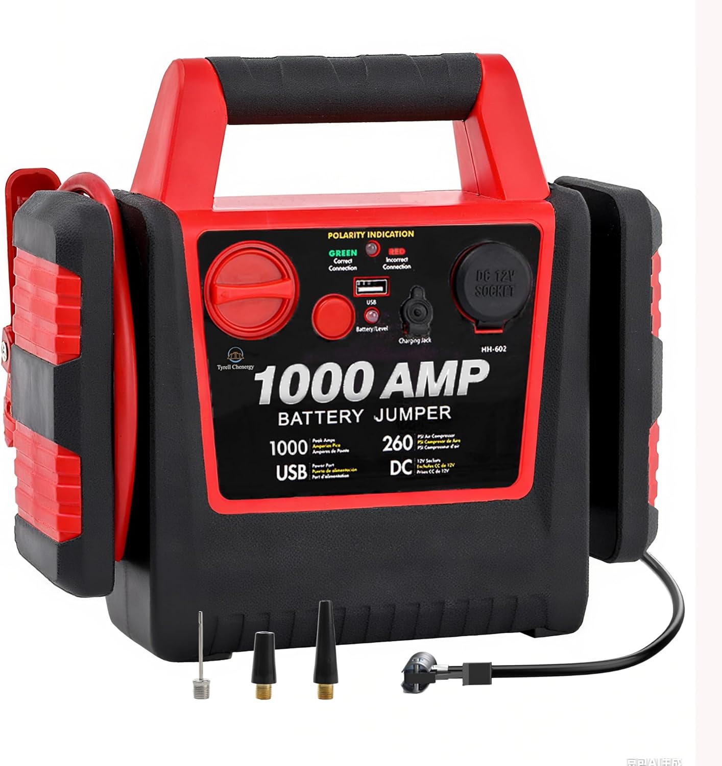 Jump Starter with Air Compressor for All Gas & 10.0L Diesel Engines, 6000A Jump Starter Battery Pack, Portable Power Bank, Safety Protection, Self-Driving Tour Essential