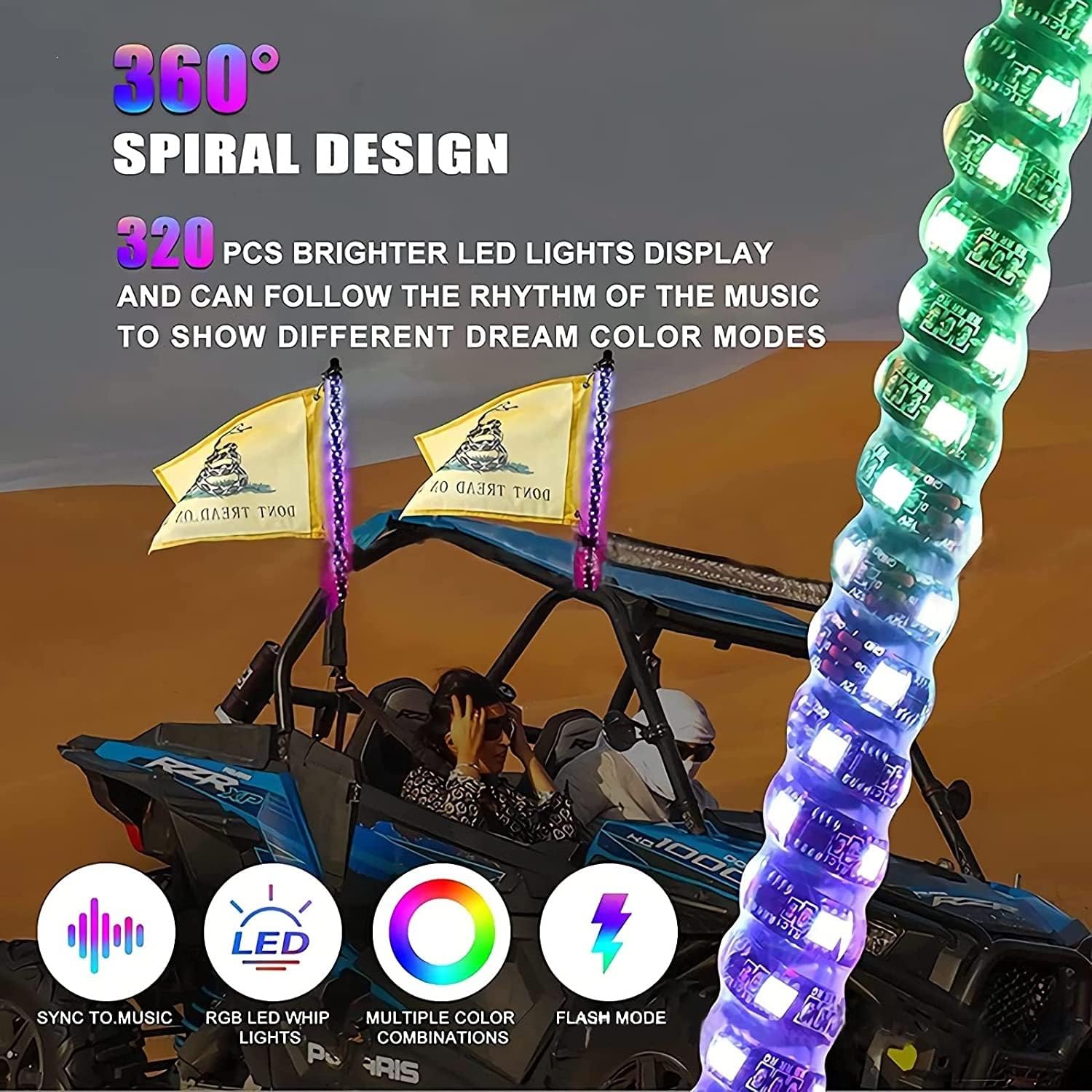 LED Lighted Whips Antenna 2pcs 3 Ft LED Whip Light ,360 ºSpiral RGB Lighted Antenna Whips Offroad Beach Whip Flag Light for ATV UTV RZR Trucks Motorcycle,wateproof