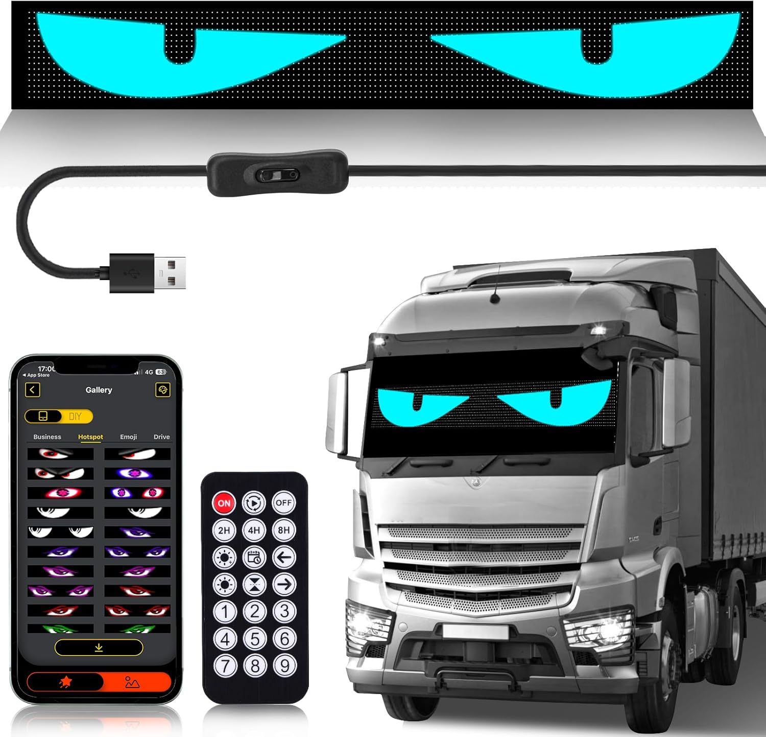 52.4" Devil's Eye Light Strip for Semi Trucks, Remote + APP Dual Control, Customizable Windshield Lights