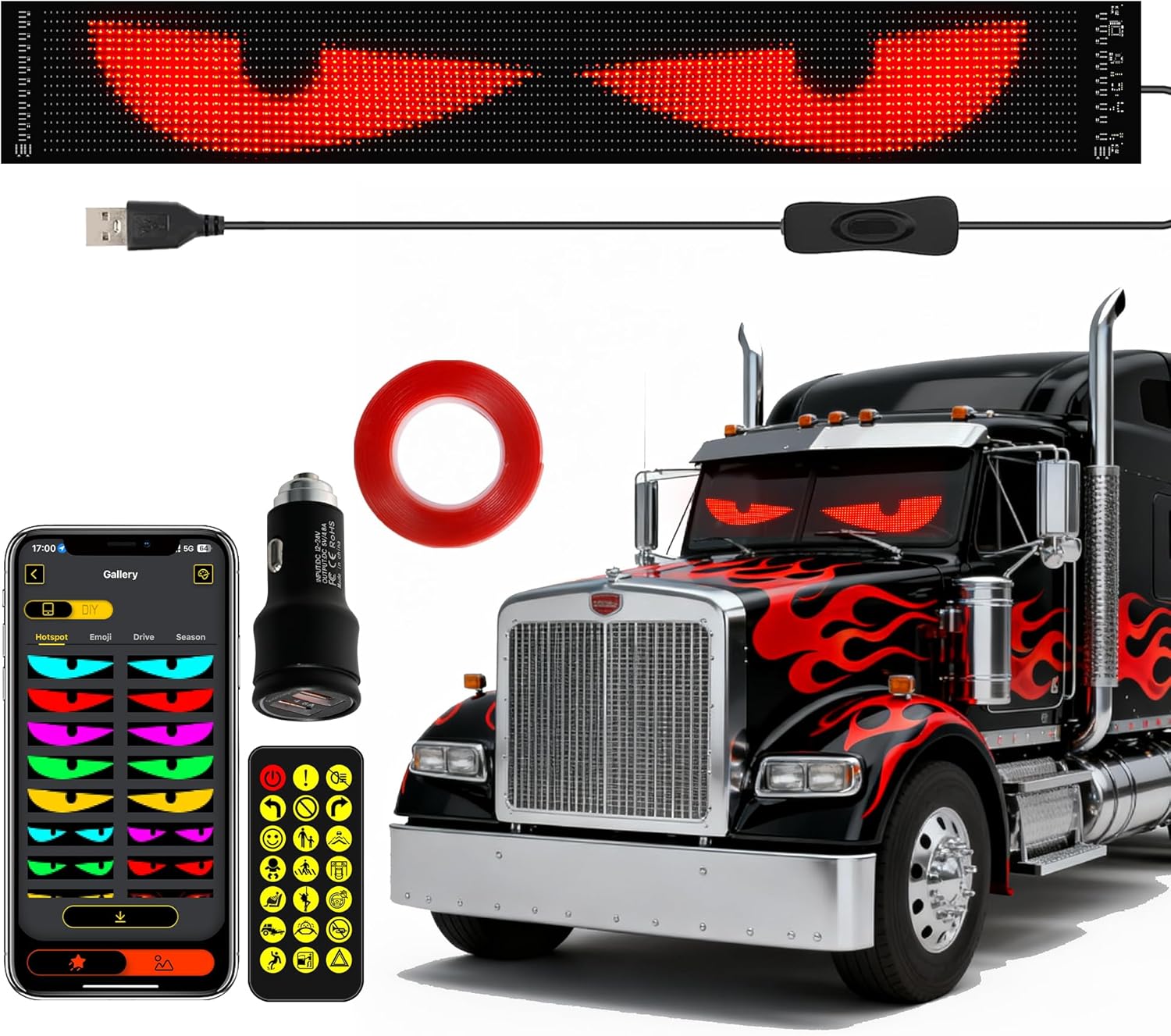 Truck Windshield LED Eyes | 69.4"*7.56"Programmable Devil Eyes Light Bar with APP & Remote for Semi-Trucks
