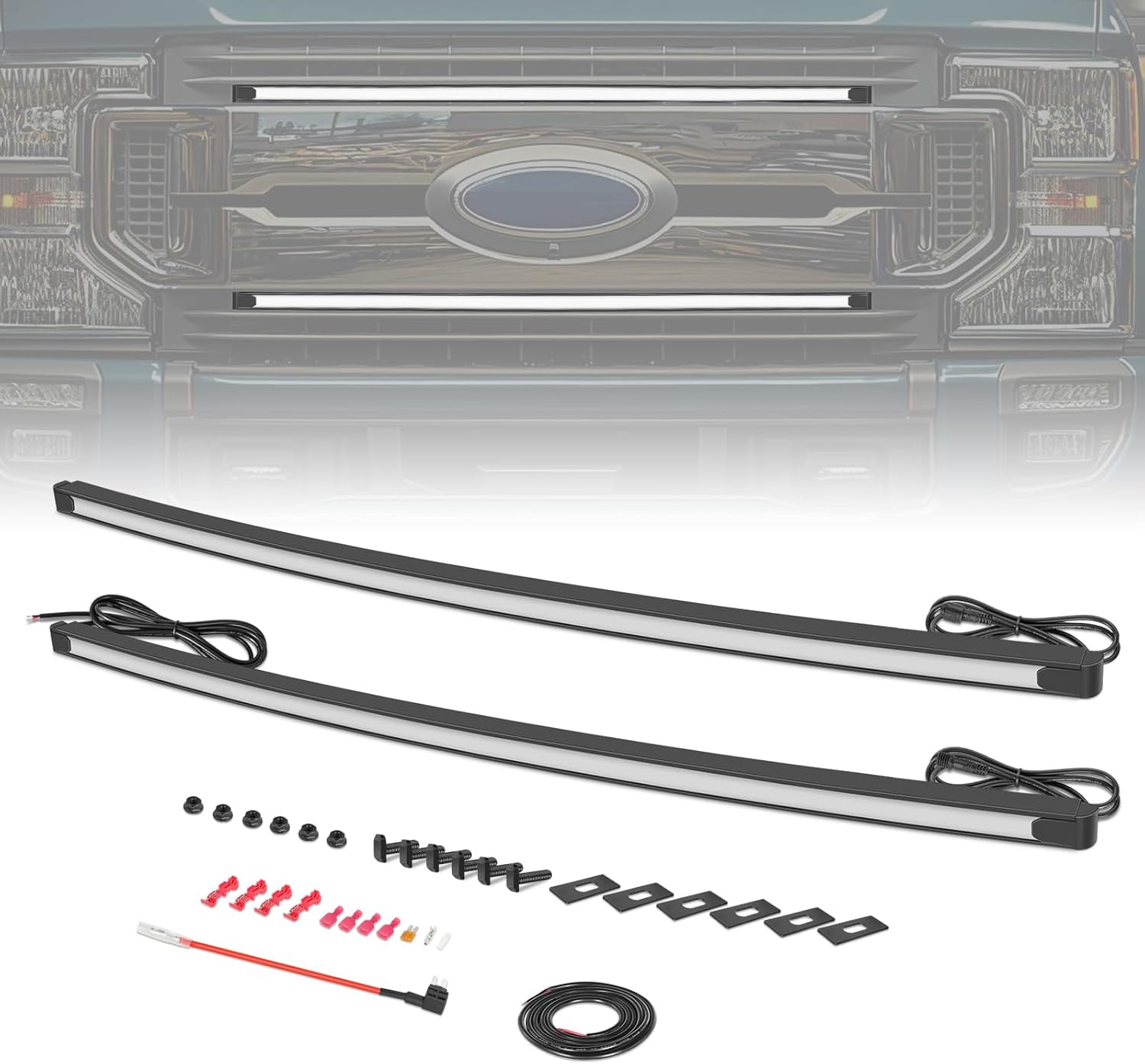 Dual Amber LED Grille Lights for Ford F250, Niwaker 2Pcs 37 Inch Curved LED Light Bar Kits Yellow Warning Lights DRL Front Grill Light Bar Compatible with 2017-2022 Ford Super Duty F-250