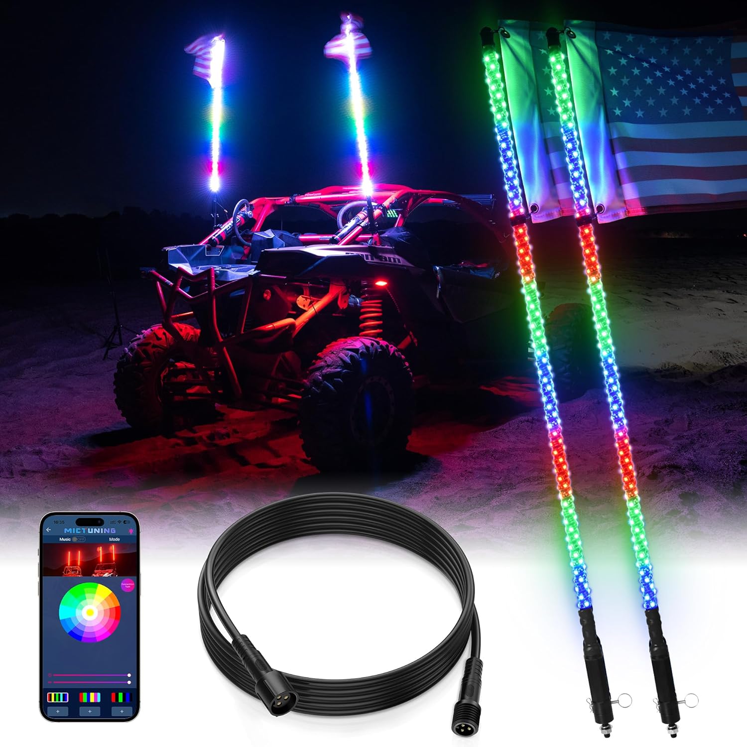 4FT-2PC LED Whip Lights for UTV RGB Chasing/Dancing Light Remote Control APP-Supported, 600+ Color Mode Combinations, RGB Chasing Lighted Antenna Whips for UTV, ATV, Truck, Dune Buggy