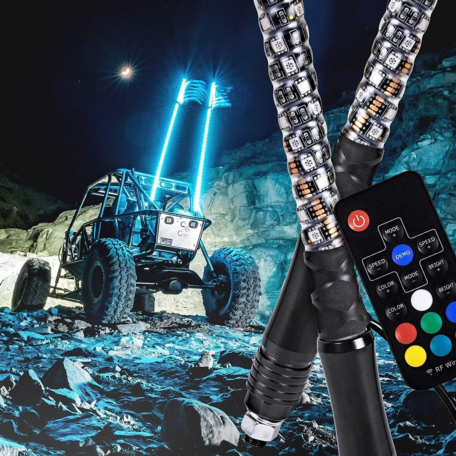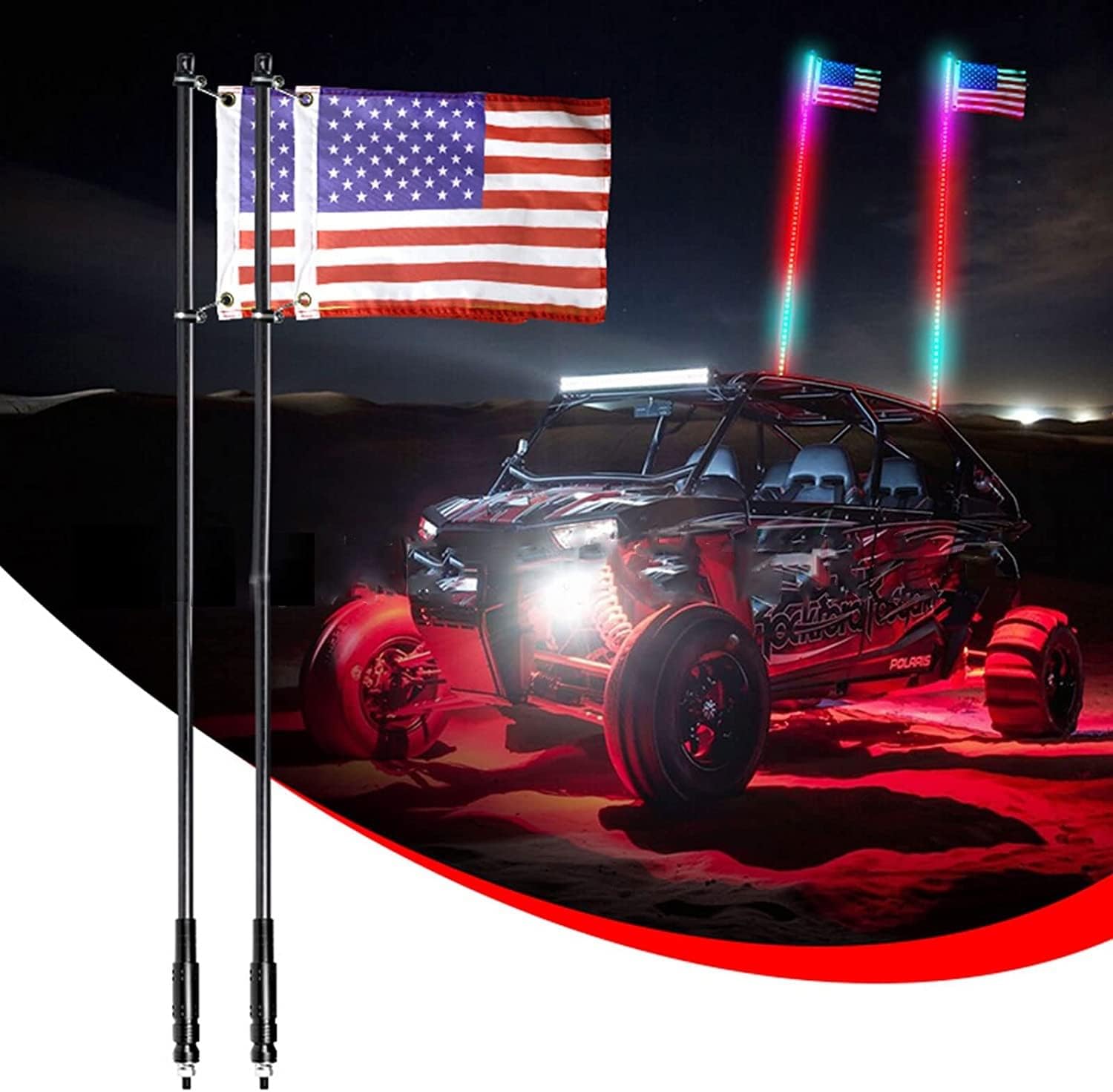 led Lighted Antenna Whips 2pcs 2FT LED Flexible Whip Lights with Remote Control and Flag Pole ,Offroad RGB Warning Lighted Antenna Whips, for ATV UTV RZR Off Road Polaris Trucks