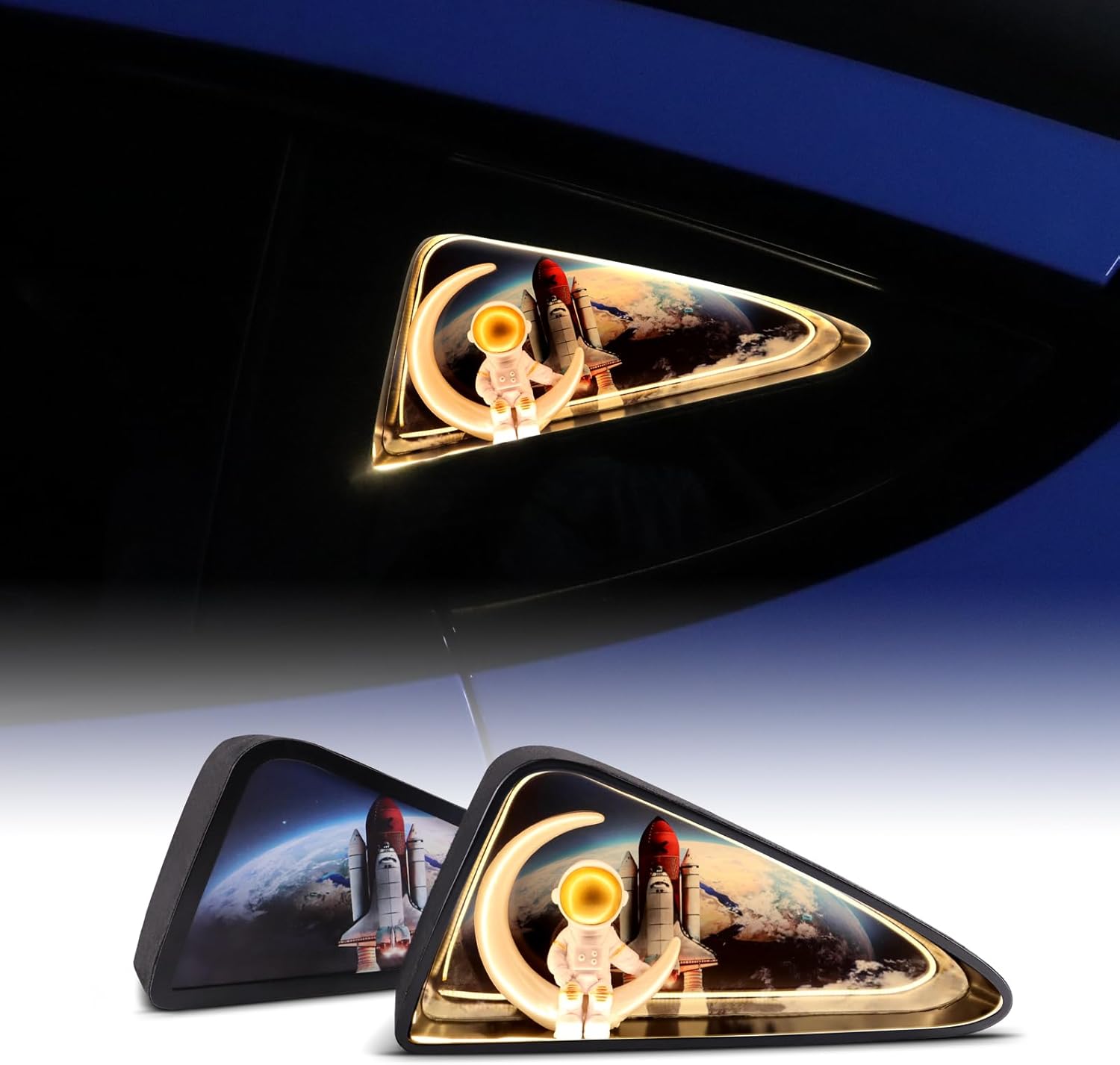 for Tesla Model 3 2017 2018 2019 2020 2021 2022 2023 2024 LED Rear Back Quarter Window Light Rocket Aerospace Theme Decoration Lights Kits Exterior Accessories DC 15V (Gold)