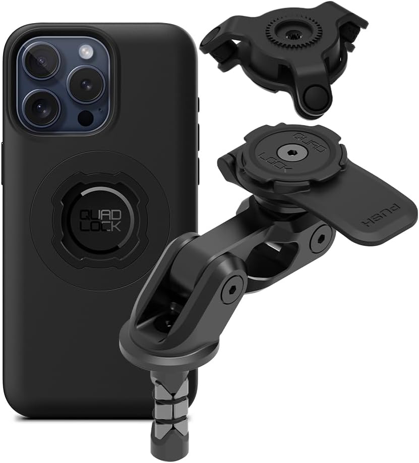 Quad Lock Motorcycle Fork Stem Mount PRO Kit with Vibration Dampener and MAG Phone Case for iPhone 15 Pro Max