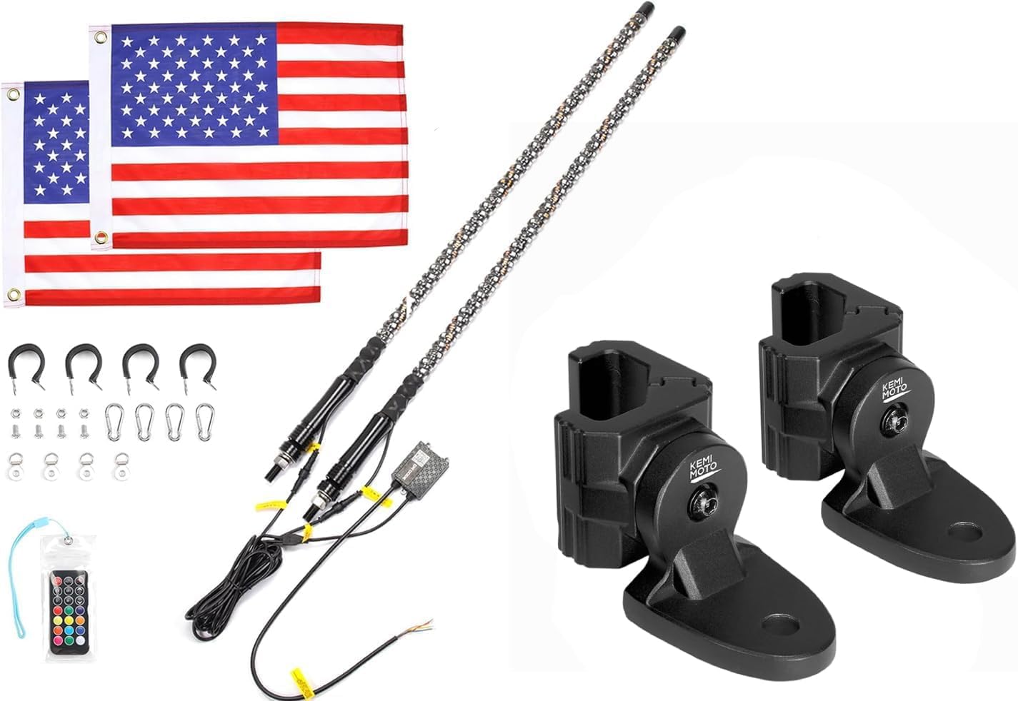 KEMIMOTO 2pc 3ft Spiral Whip Lights for Side by Side,and Whip Light Mounts Flag Whip LED Antenna Compatible with Polaris RZR Can-Am Maverick X3 Sportsman