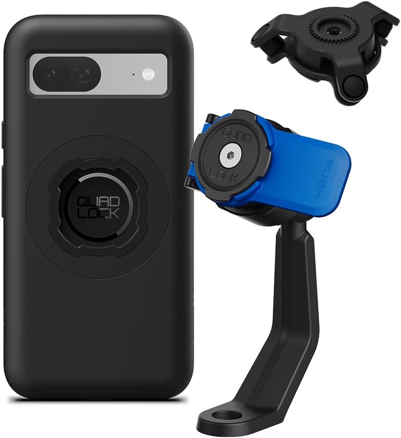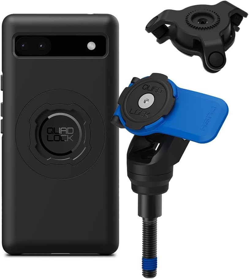 Quad Lock Mirror Stem Motorcycle Phone Mount with Vibration Dampener and MAG Phone Case for Pixel 8a