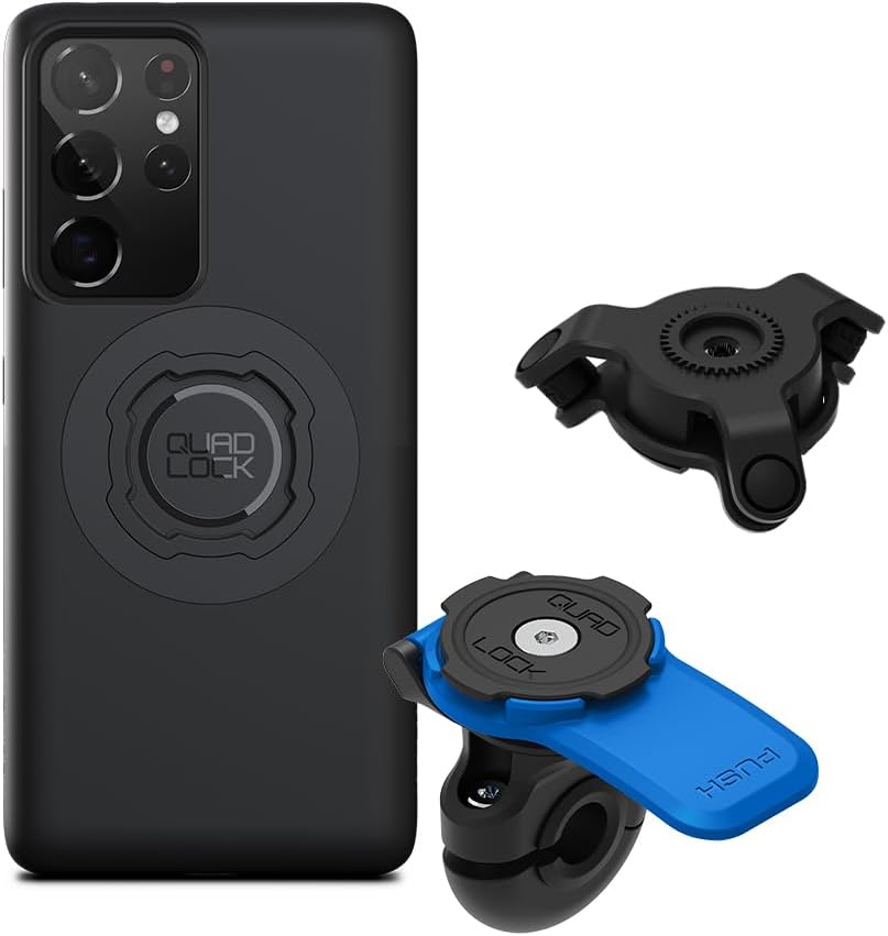 Quad Lock Mirror Motorcycle Phone Mount with Vibration Dampener and MAG Phone Case for Galaxy S21 Ultra